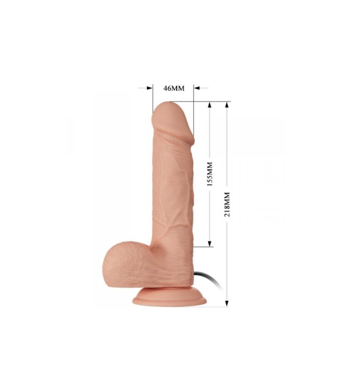 La longitud total del dildo es de 21,8 cm, la parte que se penetra tiene 14 cm de largo, mientras que el diámetro del dildo es de 4,6 cm.