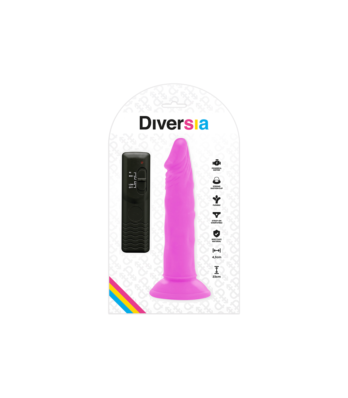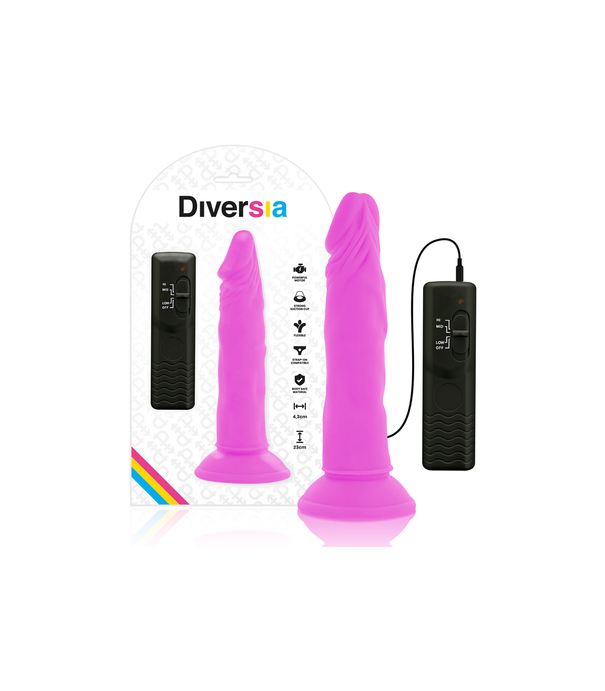DIVERSIA - DILDO REALÍSTICO FLEXIBLE CON VIBRACIÓN LILA 23 CM -O- 4.3 CM