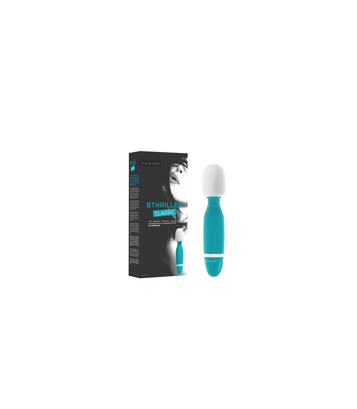 B Swish te trae el Bthrilled Classic, un poderoso y placentero masajeador de varita listo para la diversión impermeable. Disfruta de la suave y sedosa cabeza de masaje de silicona para el cuerpo y encuentra placer con 5 funciones de masaje. ¡Con infi nitas posibilidades, deja que tu imaginación o la de tu compañía se desborde! Estremécete, estimúlate.