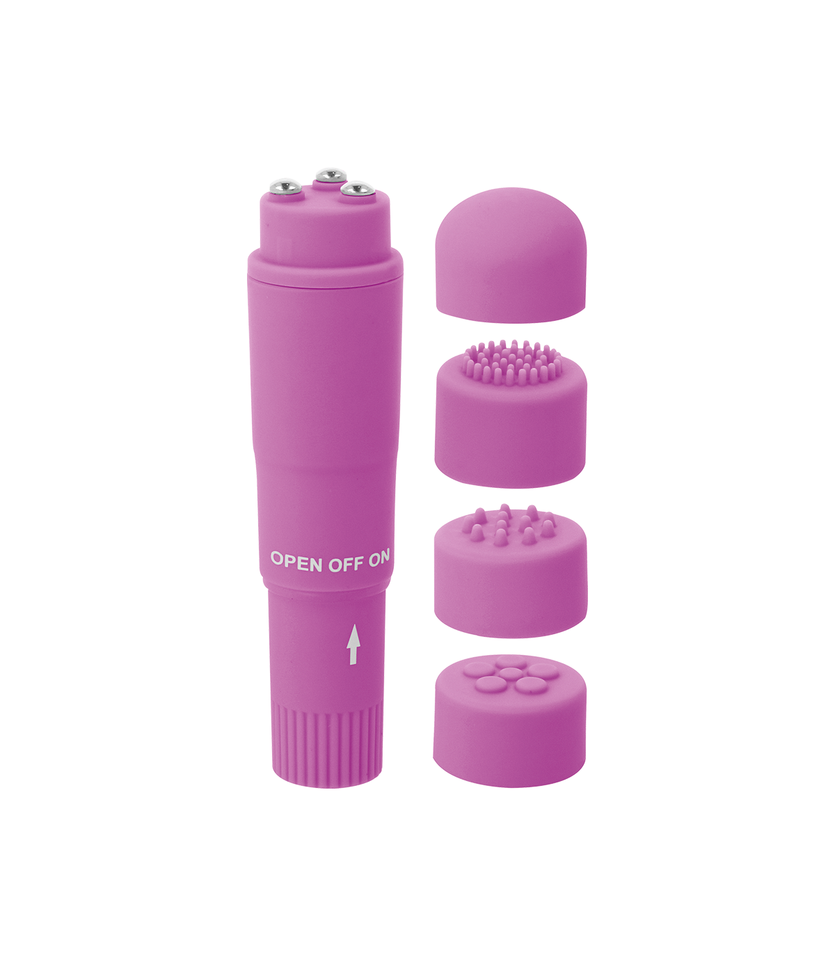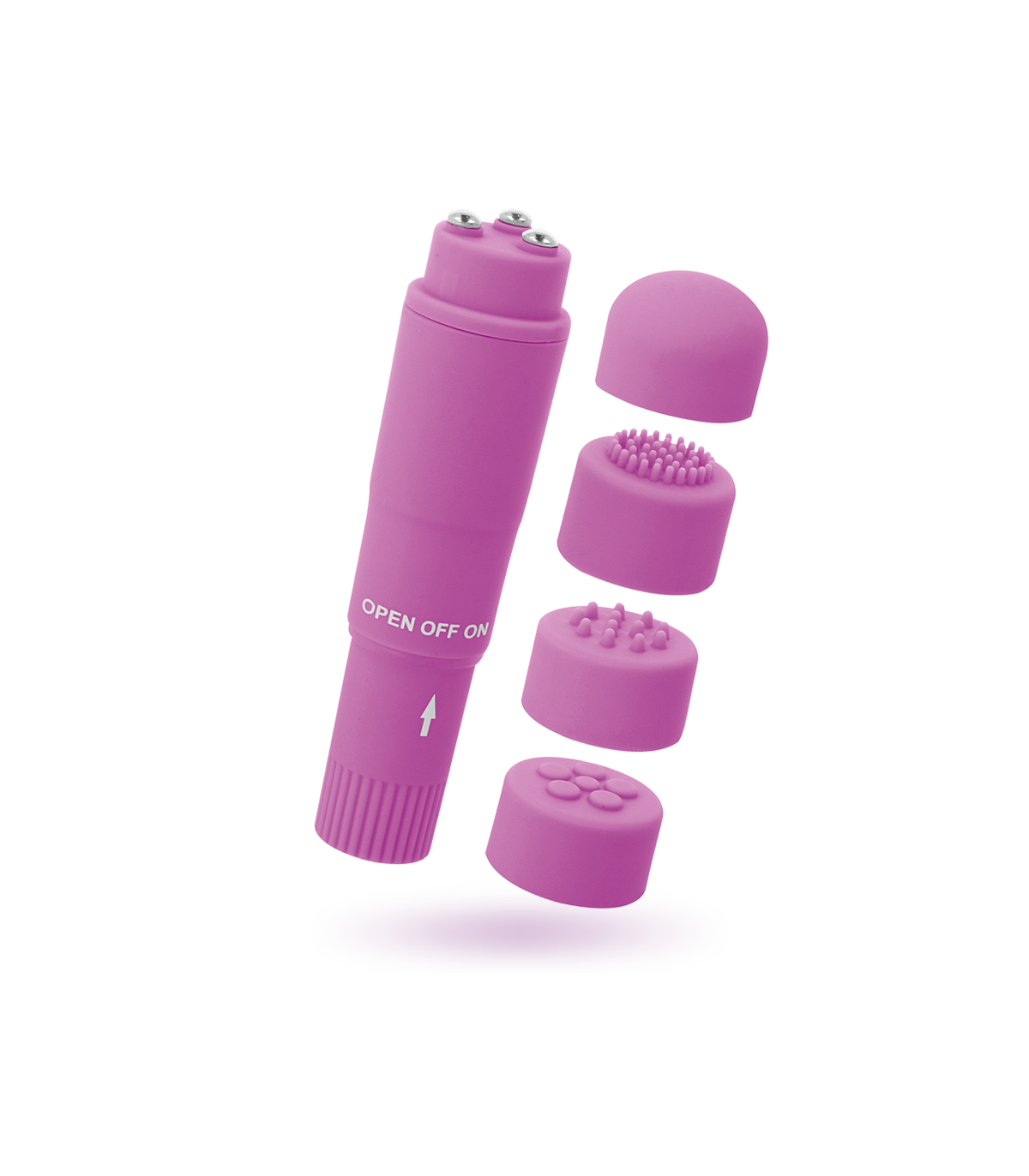 Este potente estimulador portátil hace lo que dice en el envase. Viene con 4 cabezales diferentes fácilmente intercambiables para vivir distintos estímulos. A veces lo único que necesitas es una velocidad. Este pequeño estimulador está hecho de ABS con recubrimiento de poliuretano.