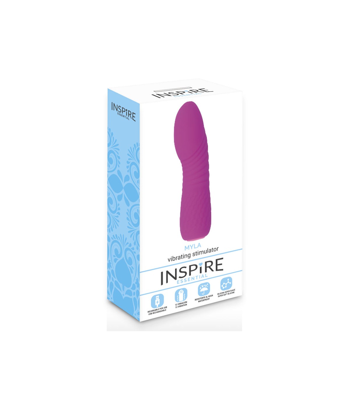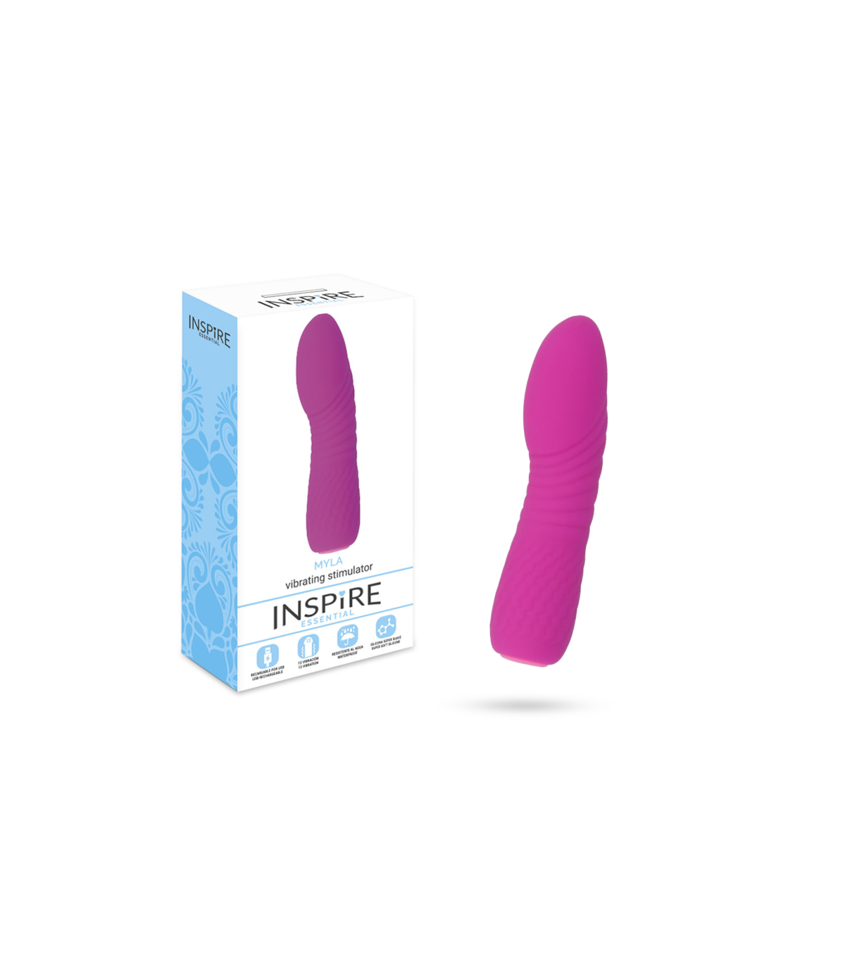Presentamos a Myla, un flexible y elegante vibrador recargable dispuesto a entregarte vibraciones intensas a través de su cuerpo de silicona hipoalergénico y de forma ergonómica que se adapta rápidamente al calor de tu cuerpo.
