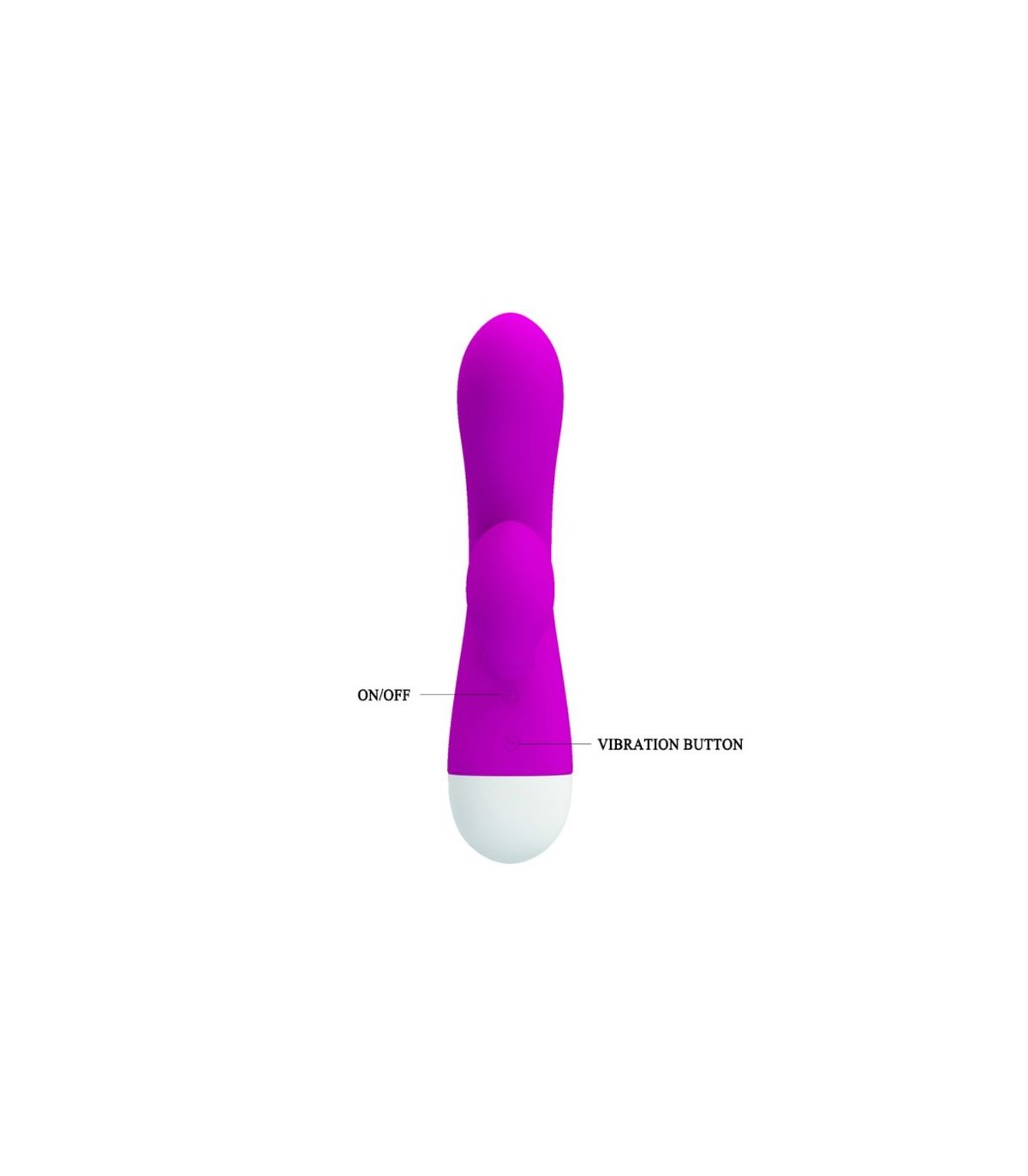 Este recargable vibrador con rabbit de Pretty Love está hecho de suave silicona de alta calidad. El eje del vibrador está angulado para llegar prefectamente al punto G mientras la parte de rabbit suave y flexible estimula el clítoris.