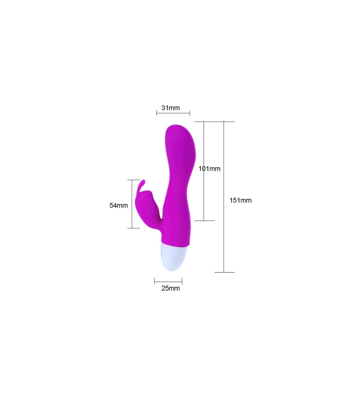 Tiene forma de un vibrador clásico con rabbit para la estimulación extra de clítoris. También cuenta con 30 intensos modos de vibración y patrones de pulsación para una perfecta estimulación interna y externa.