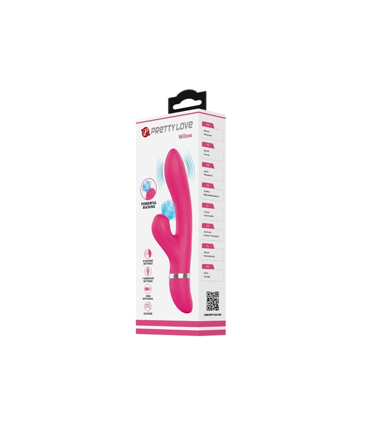¿Te gustaría poder recrear esa increíble sensación de recibir oral mientras disfrutas de la penetración? Tus oraciones son respondidas por el vibrador de conejo con succión de clítoris Pretty Love. Este conejo único tiene un toque moderno, con un estimulador de succión del clítoris y un potente masajeador vibratorio del punto G para el orgasmo trascendental de tus fantasías. Aprieta el botón para activar 7 modos increíbles. El estimulador externo succiona tu clítoris, mientras te rellenas de silicona sedosa con una punta curva para despertar tu punto G. Los orgasmos mixtos son pan comido con este conejito chupador.