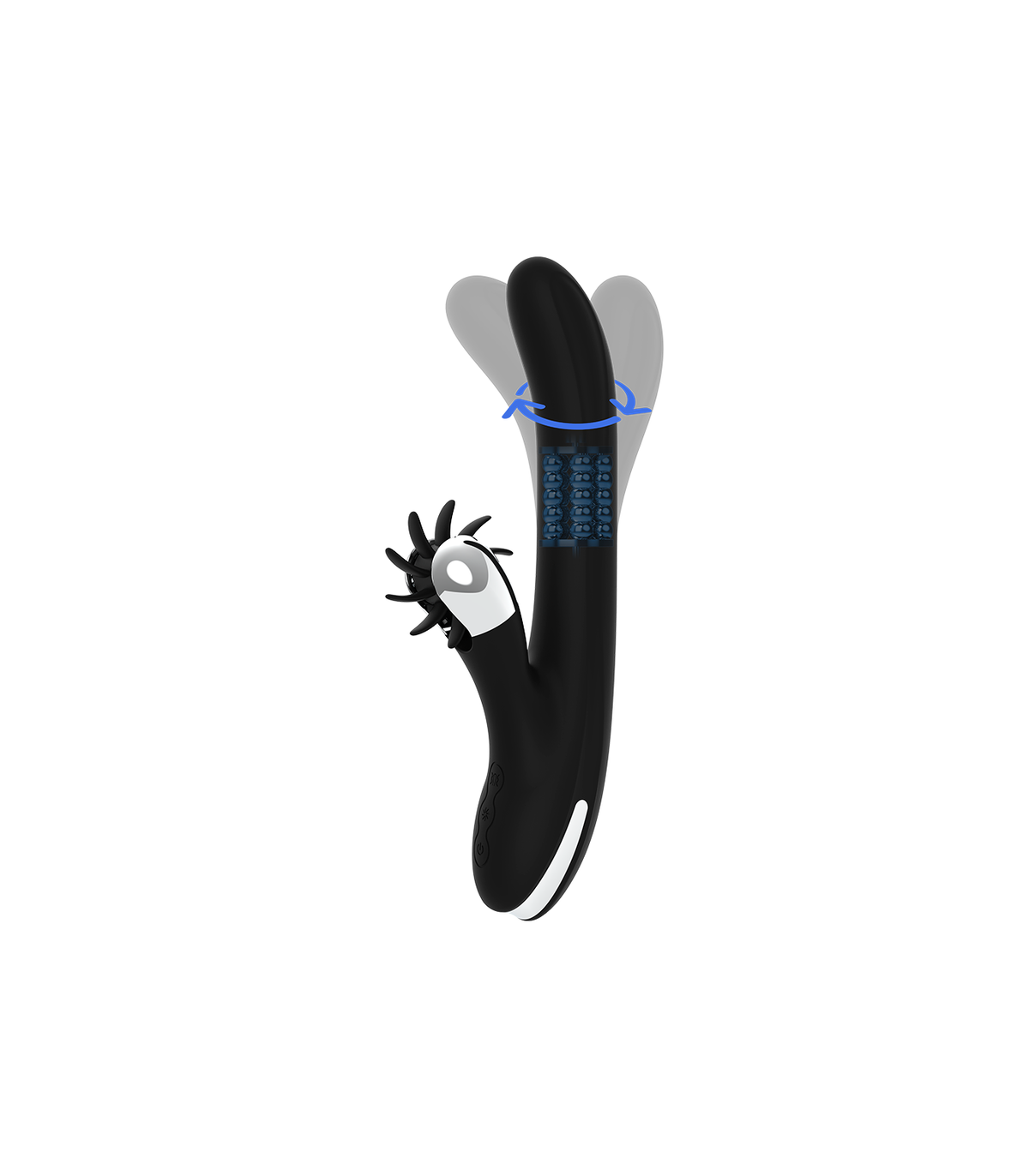 La gama STORM ROTATION VIBE incorpora una base de suaves perlas giratorias y cabezal curvo oscilante que te llevaran al clímax, gracias al contacto con el punto G.