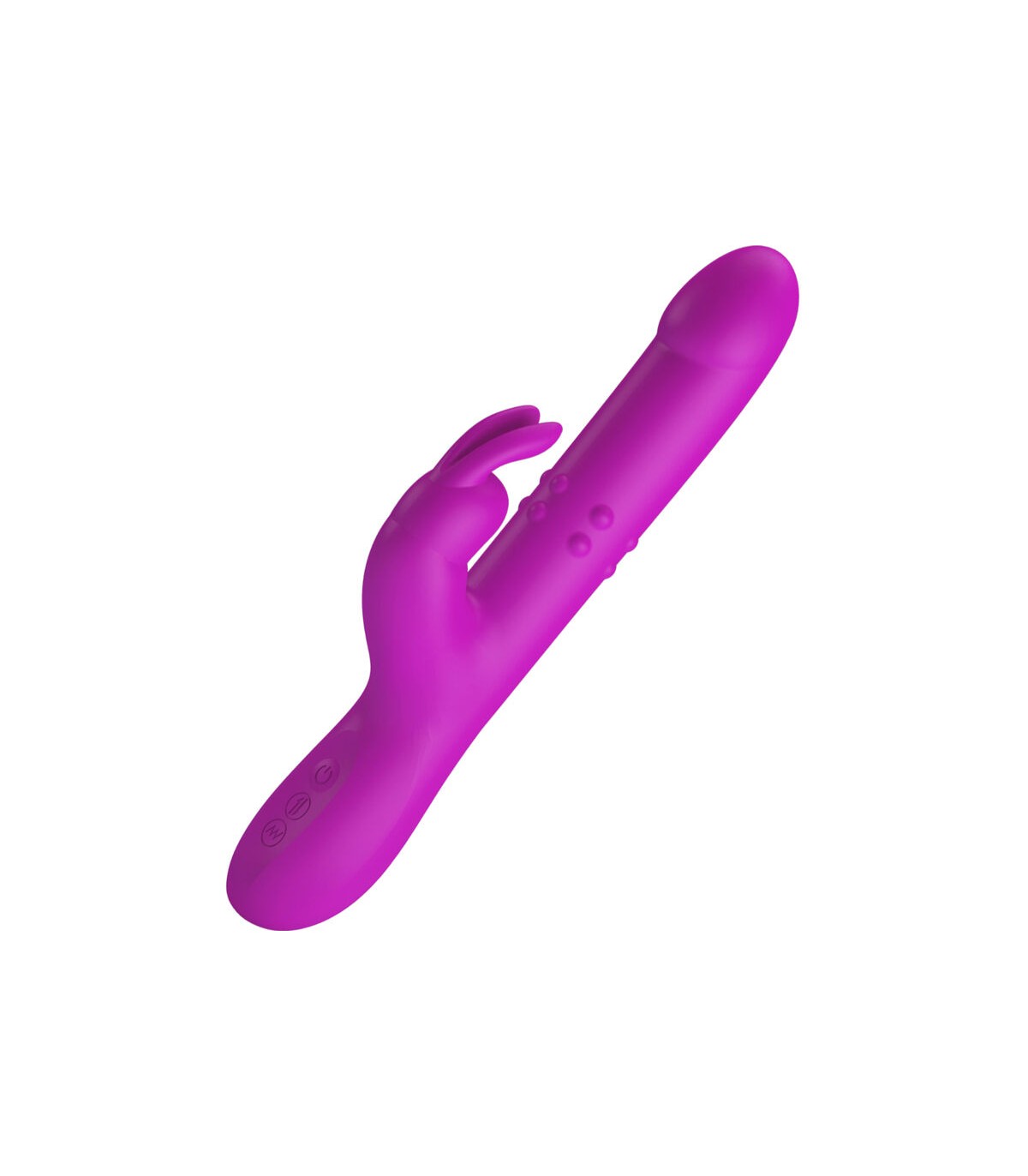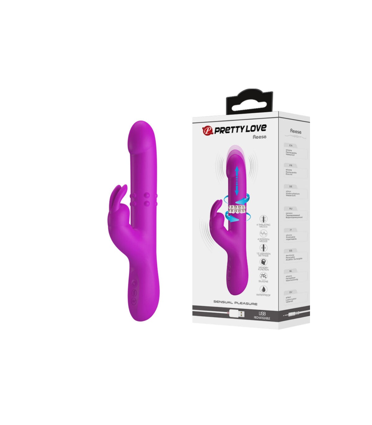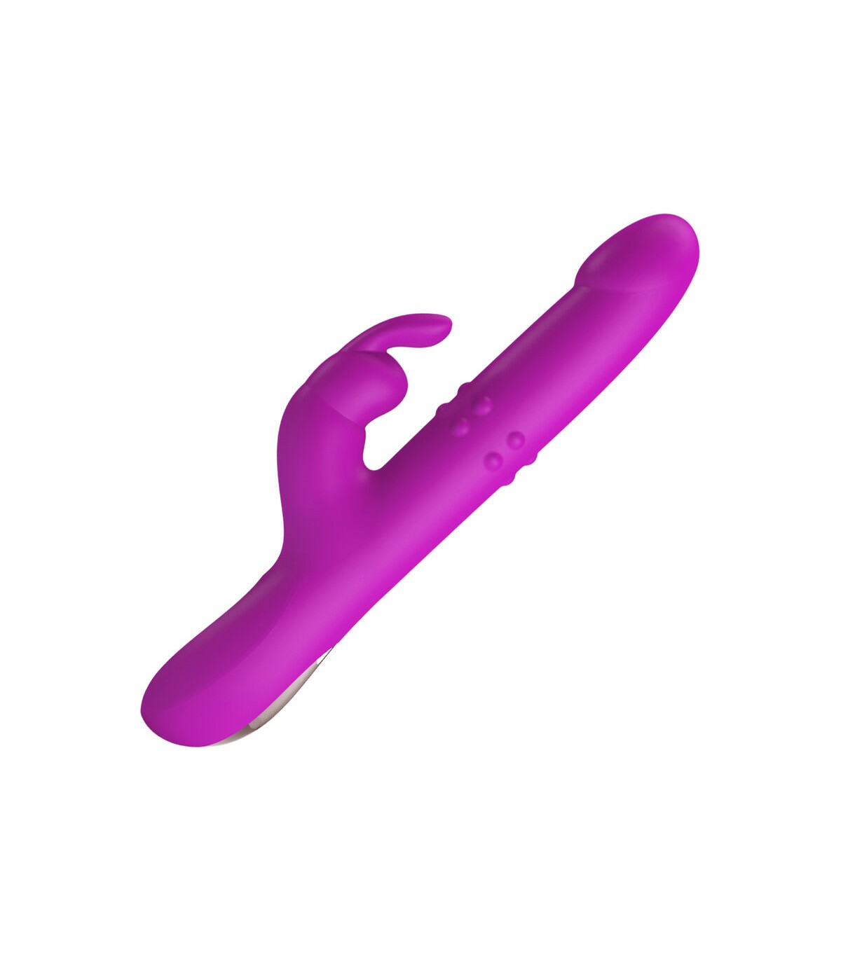 Vibrador de conejo con vibración de varias velocidades, empuje y amp; ¡la rotación estimula la vagina y el clítoris al mismo tiempo! El vibrador de conejo de Pretty Love tiene una textura agradable y gira y gira profundamente dentro de la vagina mientras masajea el punto G. El clítoris es estimulado al mismo tiempo por el estimulador flexible con vibraciones. Este programa de placer completo con vibración, empuje y rotación de múltiples velocidades se puede controlar fácilmente con el botón de control. El vibrador se ajusta perfectamente a la anatomía femenina y está completamente hecho de un material de silicona suave y aterciopelado que se siente muy bien contra la piel durante el juego. Además, el vibrador se puede recargar con el cable USB incluido.