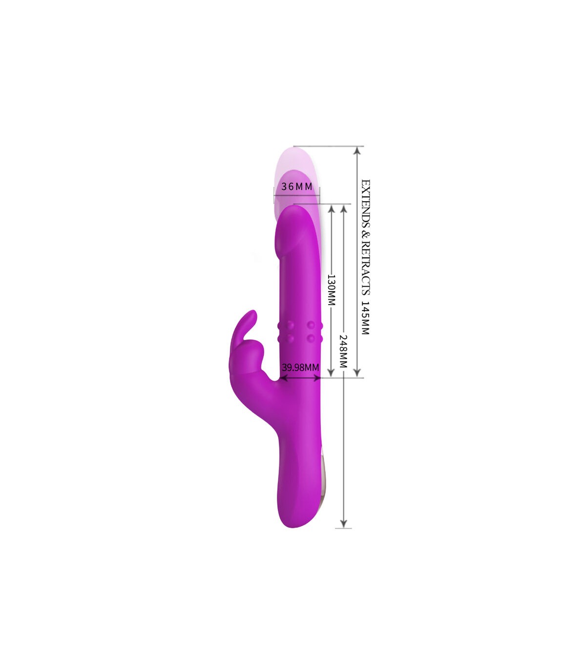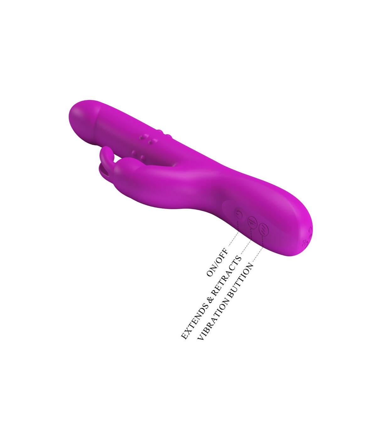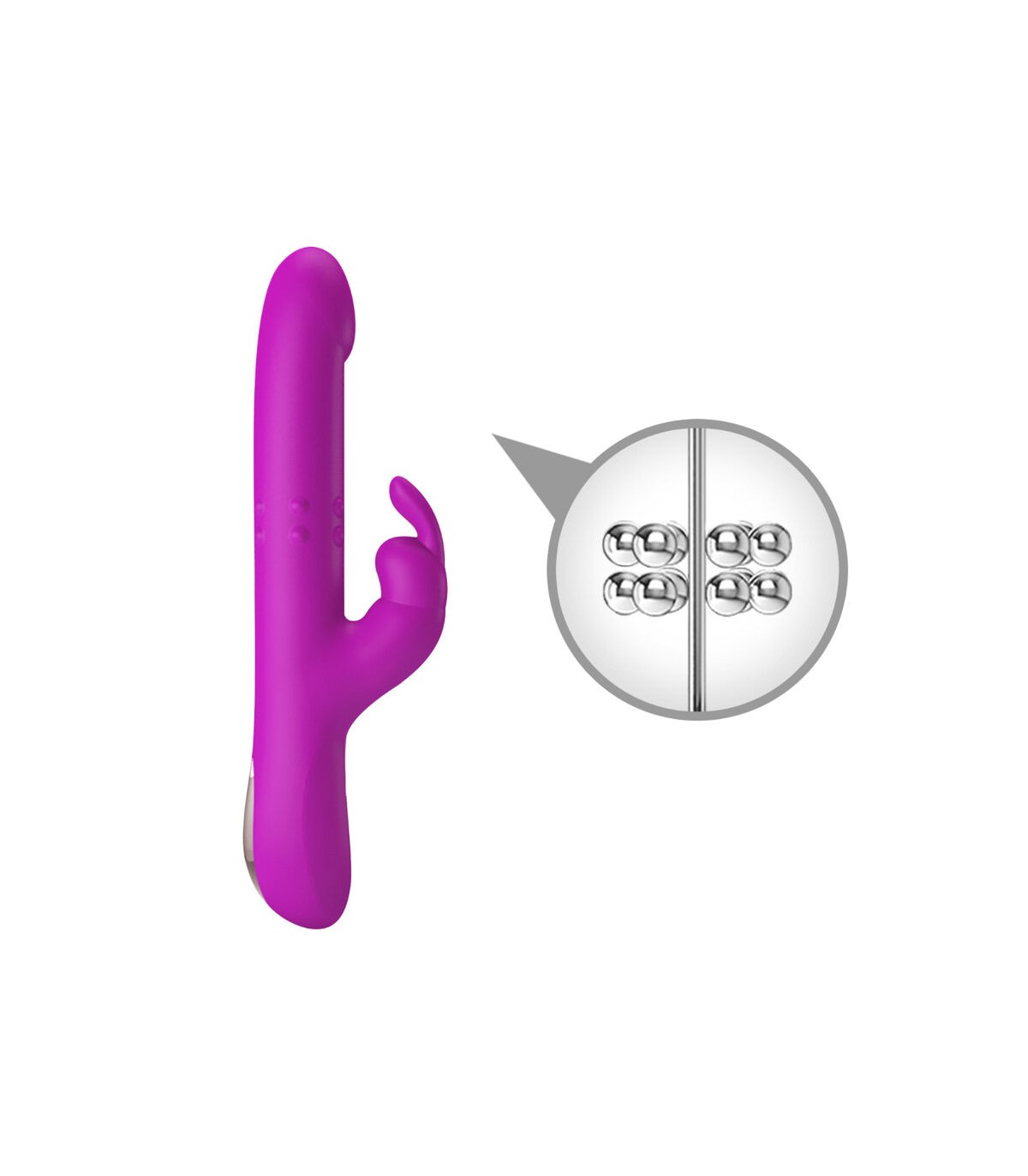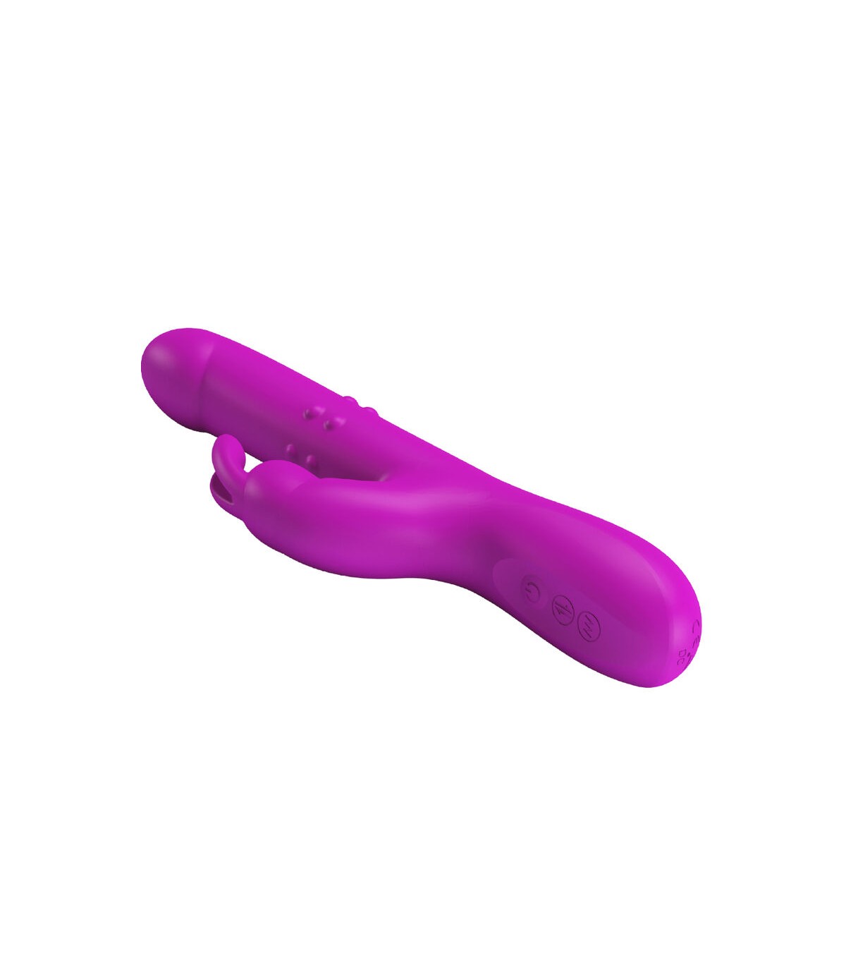 Vibrador de conejo con vibración de varias velocidades, empuje y amp; ¡la rotación estimula la vagina y el clítoris al mismo tiempo! El vibrador de conejo de Pretty Love tiene una textura agradable y gira y gira profundamente dentro de la vagina mientras masajea el punto G. El clítoris es estimulado al mismo tiempo por el estimulador flexible con vibraciones. Este programa de placer completo con vibración, empuje y rotación de múltiples velocidades se puede controlar fácilmente con el botón de control. El vibrador se ajusta perfectamente a la anatomía femenina y está completamente hecho de un material de silicona suave y aterciopelado que se siente muy bien contra la piel durante el juego. Además, el vibrador se puede recargar con el cable USB incluido.
