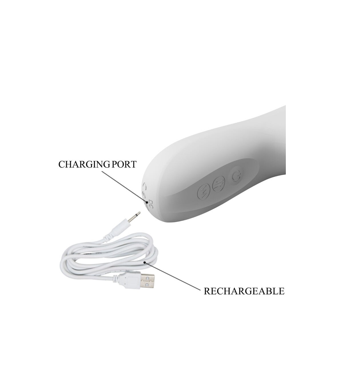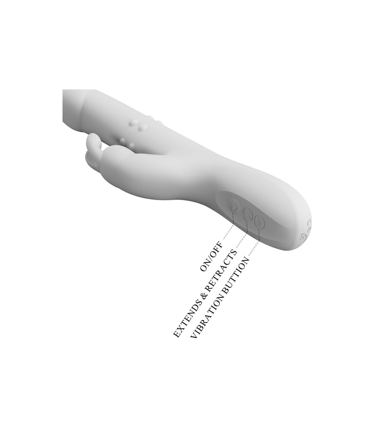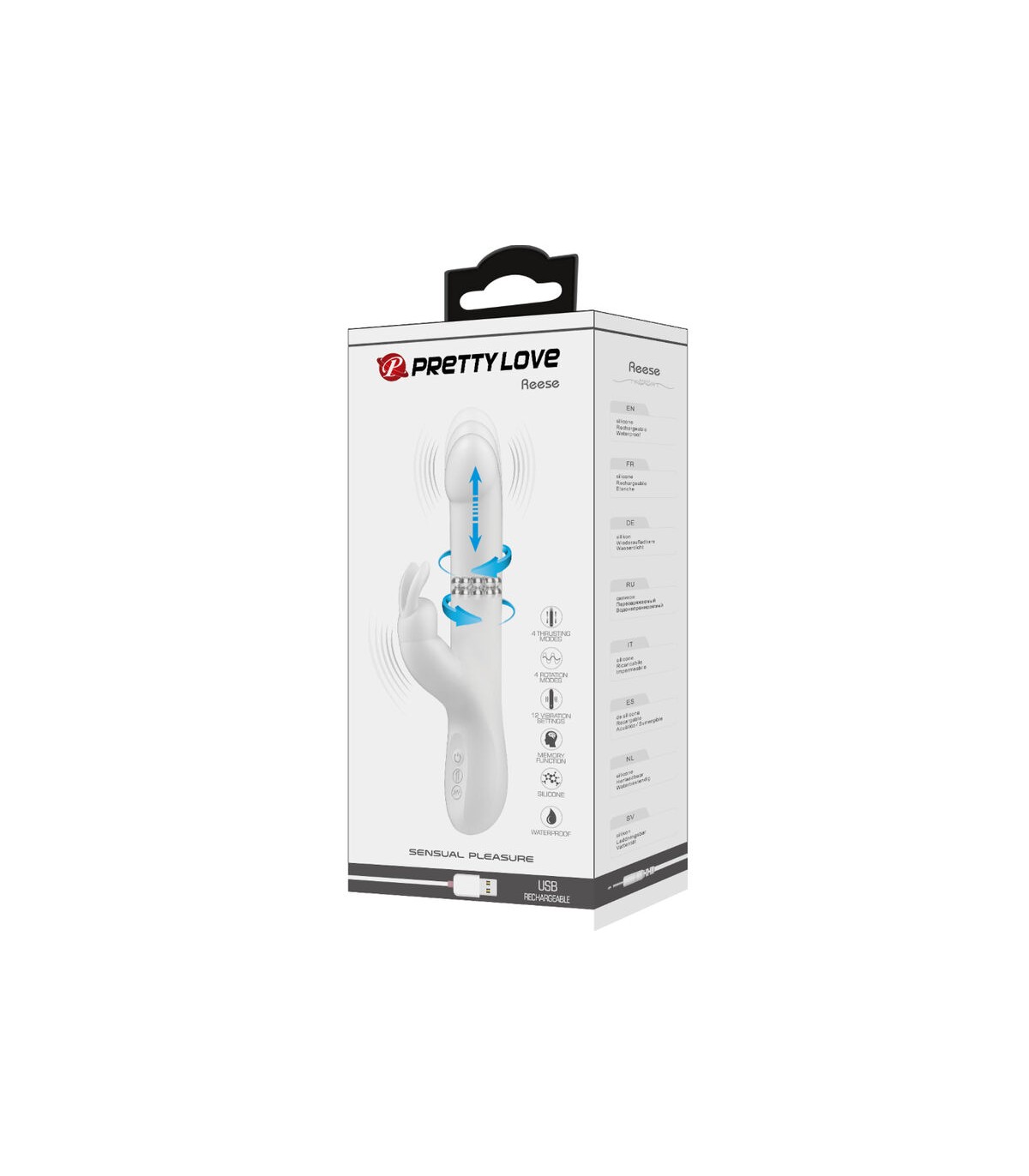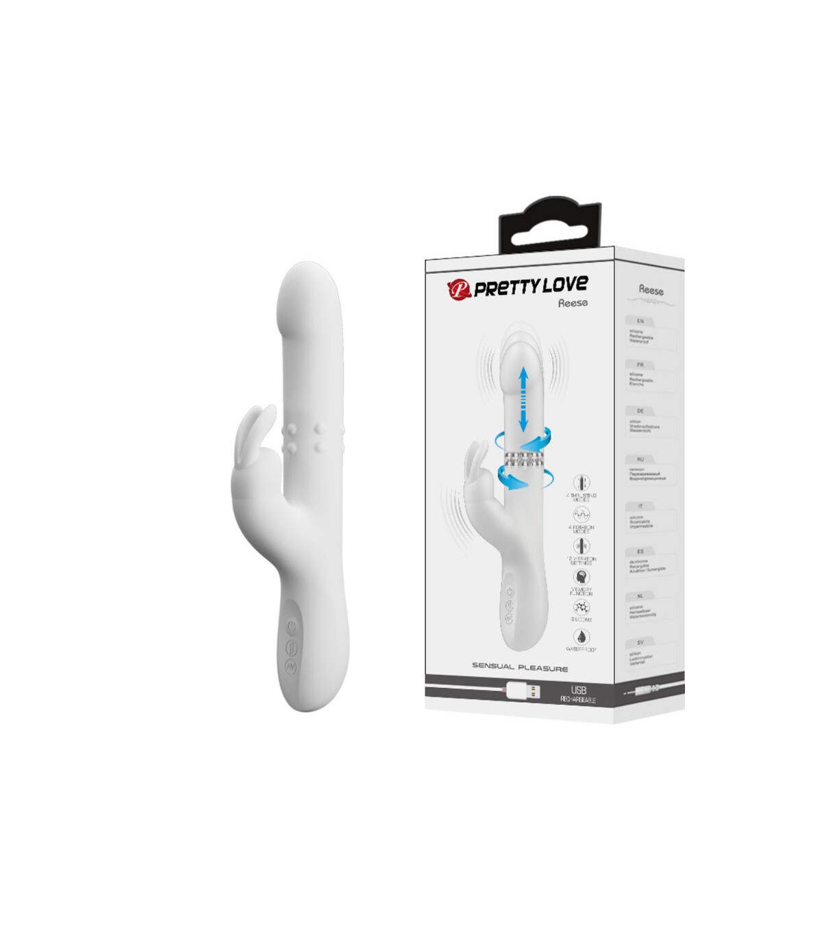 Vibrador de conejo con vibración de varias velocidades, empuje y amp; ¡la rotación estimula la vagina y el clítoris al mismo tiempo! El vibrador de conejo de Pretty Love tiene una textura agradable y gira y gira profundamente dentro de la vagina mientras masajea el punto G. El clítoris es estimulado al mismo tiempo por el estimulador flexible con vibraciones. Este programa de placer completo con vibración, empuje y rotación de múltiples velocidades se puede controlar fácilmente con el botón de control. El vibrador se ajusta perfectamente a la anatomía femenina y está completamente hecho de un material de silicona suave y aterciopelado que se siente muy bien contra la piel durante el juego. Además, el vibrador se puede recargar con el cable USB incluido.