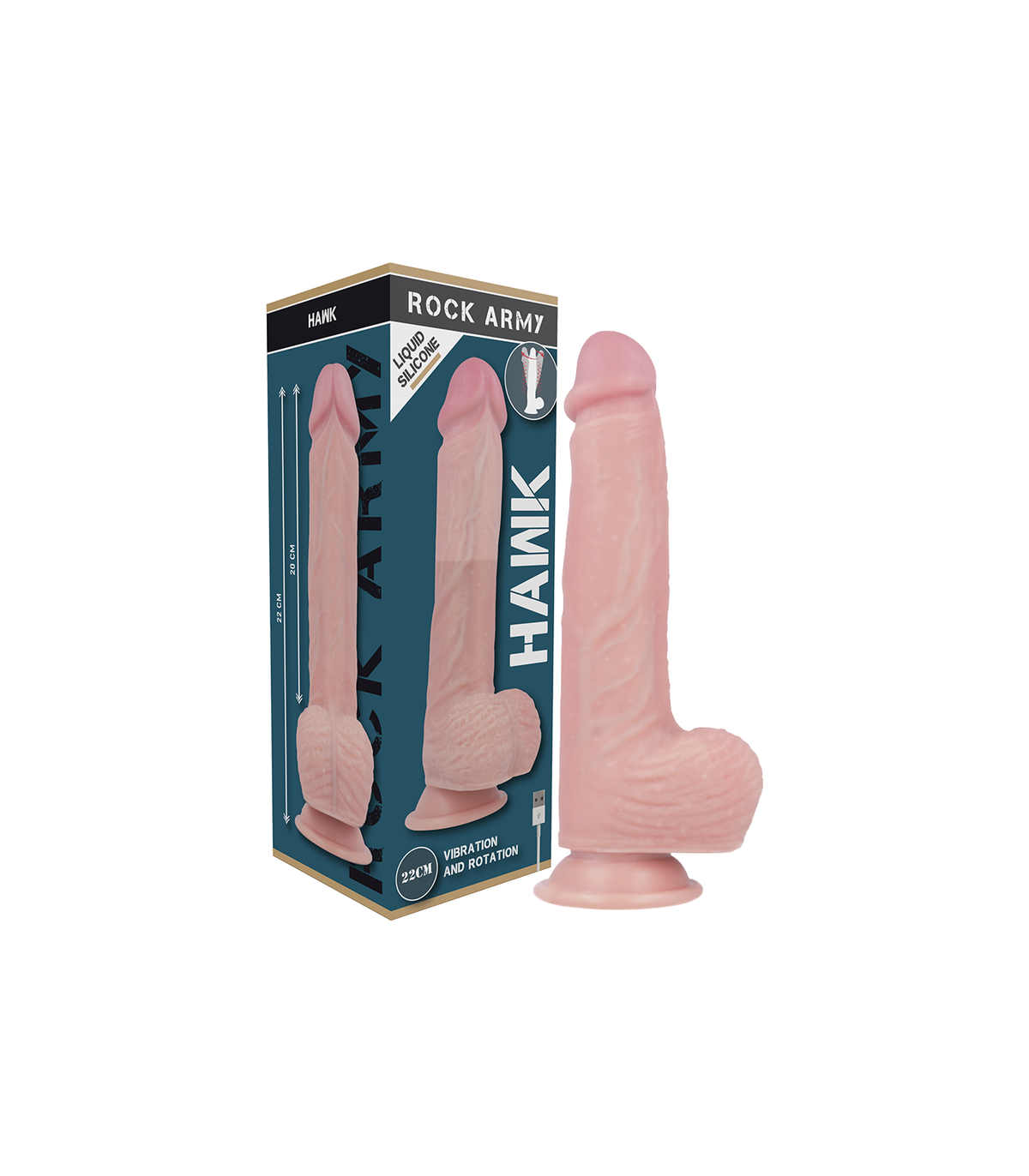El Liquid silicone Hawk es un dildo de silicona placentero y realista de la colección Rock Army, diseñado para alcanzar todos tus puntos íntimos.