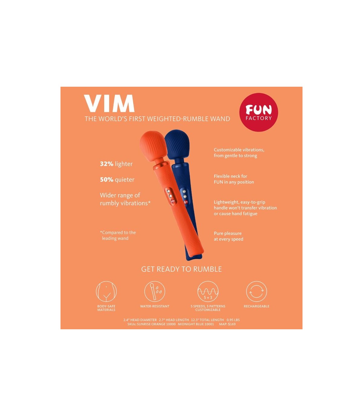 Nunca antes habías sentido una WAND como la Fun Factory VIM. La mayoría de los vibradores ofrecen pura potencia y nada más. En sus ajustes bajos, son zumbidos o irritantes. VIM cuenta con un motor ponderado pionero en la industria que proporciona vibraciones roncas a cualquier velocidad, incluso a la más suave.