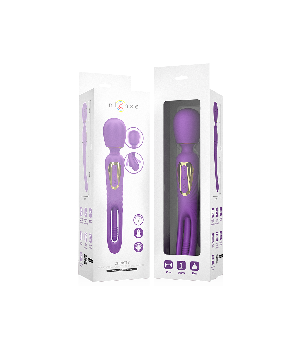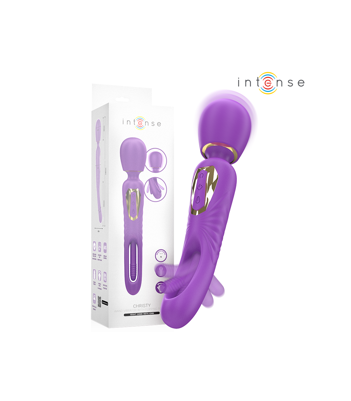 Vibración poderosa + lengua estimulante = placer total. La varita vibradora Christy de la colección Intense combina lo mejor de dos mundos: una potente vibración y una lengua oscilante que simula el movimiento real, diseñada para llevarte directo al clímax. Ideal para estimular zonas erógenas externas como el clítoris, pezones o perineo, gracias a su diseño ergonómico y a su lengua vibradora que no deja indiferente.