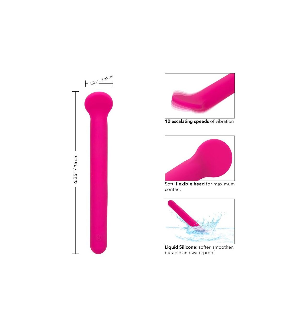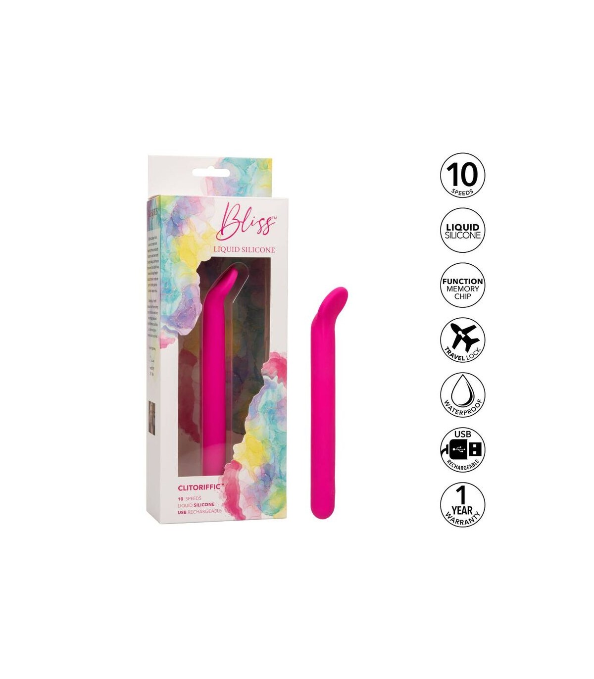 Disfrute de un paraíso de placer con el clítoris de silicona líquida de felicidad. Este ambiente sensacional presenta una punta flexible y plana, un diseño de silicona líquida formadora de cuerpo y 10 funciones potentes de vibración. La punta de contacto suave y máxima y el cuerpo de silicona 100% líquido son perfectos para acariciar puntos dulces internos y externas. Obtenga juguetón con cada aumento de las 10 velocidades incrementales de vibración con el botón de control de fácil toque. Control sin esfuerzo El placer puro con un botón de silicona de fácil toque y mantenga presionada durante 3 segundos para encenderse o desactivarse. La silicona líquida ultra plano es ideal para explorar puntos dulces sensuales y puntos de placer íntimos con facilidad. Use el control suave de un solo botón para disfrutar de hasta 110 minutos de placer vibrante. Cargue su pasión en solo 1,5 horas conectando el cable USB proporcionado al puerto de carga de auto-selección en la base del masajeador .