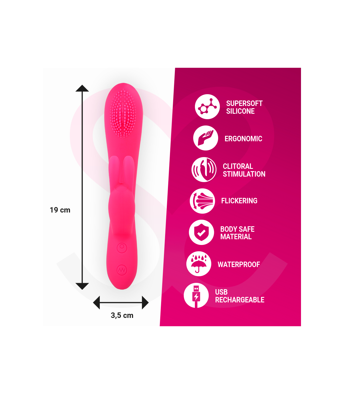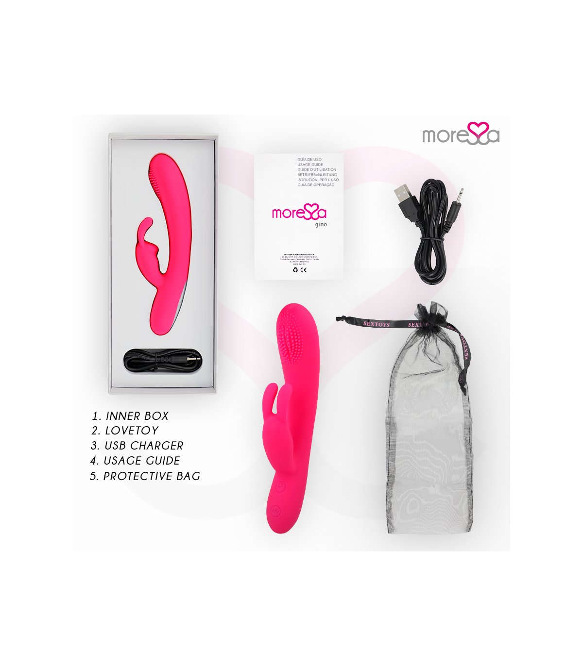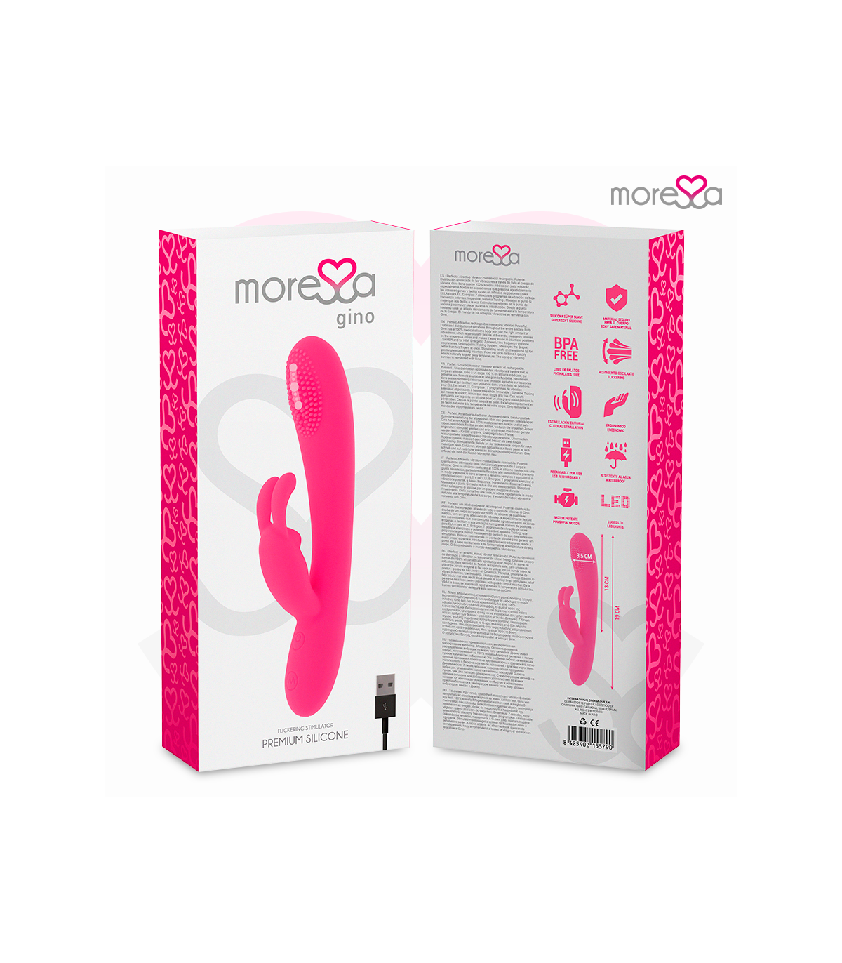 en el orificio de conexión de carga. Enchufar a la corriente con un conector o al ordenador mediante USB.Moressa es la marca referente por su diseño, calidad y tecnología. Hemos desarrollado un producto innovador y mimado cada proceso de fabricación para conseguir el mejor resultado.Moressa es símbolo de energía, fuerza y garantía. Comprar un Sextoy Moressa es sentirse reflejado con la actualidad. Cada Juguete Moressa te transportara a diferentes sensaciones. Un resultado inigualable gracias a la silicona Premium confortable y los diseños ergonómicos.