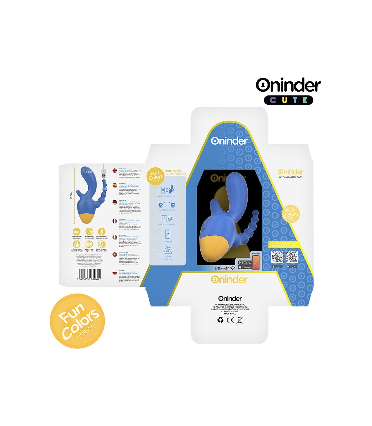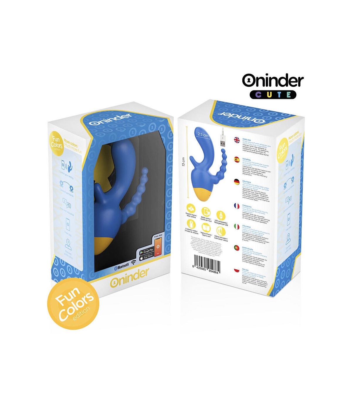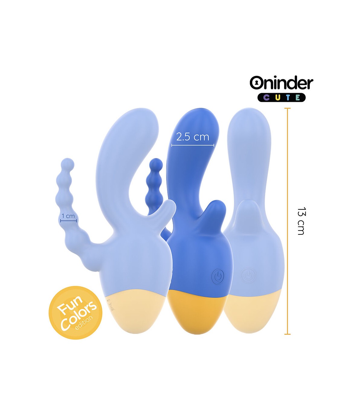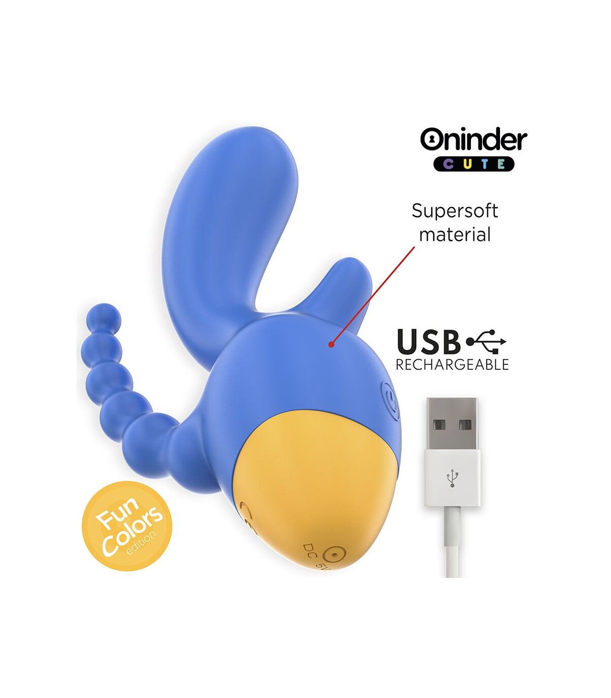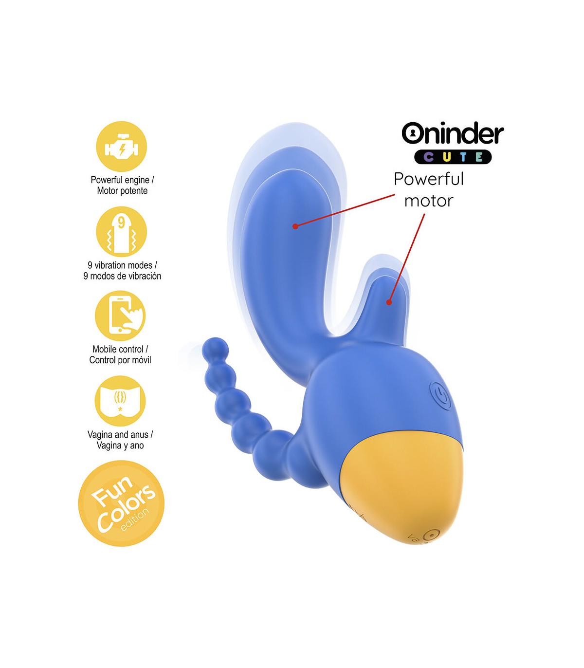 Explora un mundo de sensaciones con el vibrador de la colección ONINDER CUTE, diseñado para quienes buscan una estimulación completa y precisa. Con su vibrante combinación de azul oscuro y base amarilla, este vibrador ofrece doble estimulación, proporcionando placer tanto al clítoris como a la zona anal, en un diseño ergonómico y cómodo.