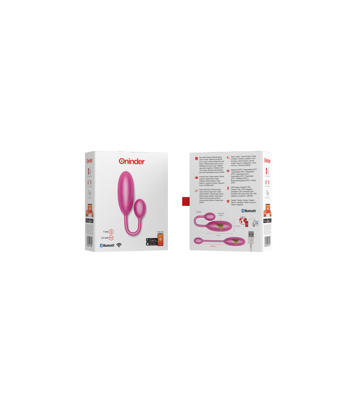 Con este vibrador no solamente puedes elegir entre combinaciones de intensidad y vibraciones preestablecidas, sino que también puedes compartir a un innovador control basado en una aplicación. Simplemente tienes que descargar la aplicación gratuita ONINDER™ en tu dispositivo Android o iOS y conectar tu smartphone o Tablet.