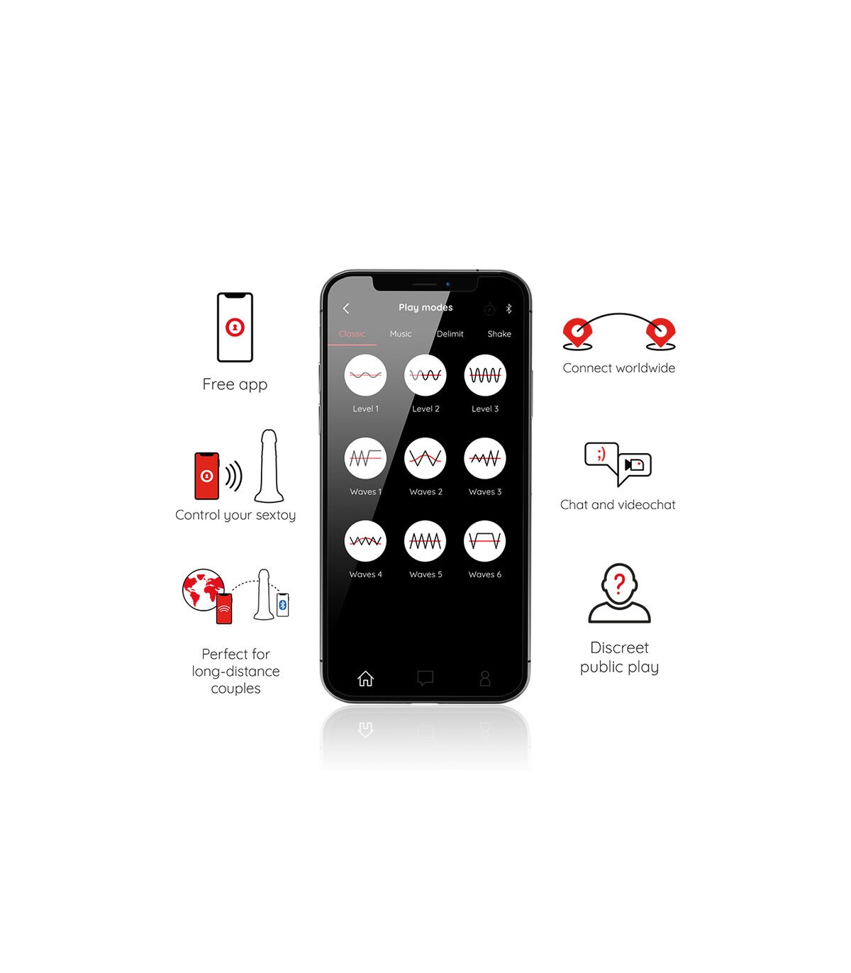 Tanto si estás al otro lado de la habitación como del océano, puedes compartir el placer con tu pareja. Emparejad vuestros juguetes con las aplicaciones de ambos teléfonos para controlar los diferentes modos de vibración, siente la magia de la tecnología sexualmente.