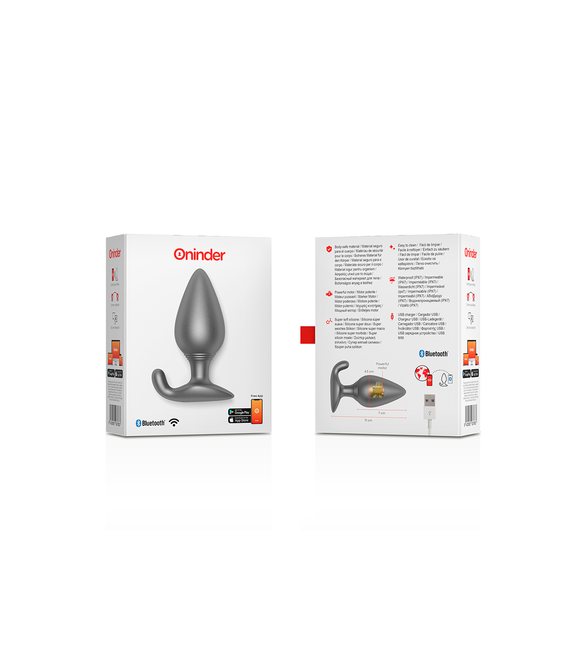 Con este vibrador no solamente puedes elegir entre combinaciones de intensidad y vibraciones preestablecidas, sino que también puedes compartir a un innovador control basado en una aplicación. Simplemente tienes que descargar la aplicación gratuita ONINDER en tu dispositivo Android o iOS y conectar tu smartphone o Tablet.