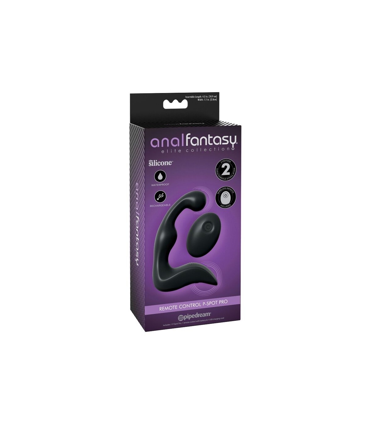 ppCuando buscas avanzar al siguiente nivel en tus juegos anales Anal Fantasy Collection es la primera opcion para un maximo placer Fabricado con nuestra silicona Elite este masajeador es body safe sin ftalaos y preparado para que puedas jugar duro Usa lo ultimo en tecnologia es USB recargable ergonomicamente disenado para una maxima comodidad y satisfaccion garantizadas PErfecto para cualquier genero esta coleccion unisex viene preparada para ofrecerte resultado increiblemente explosivos pulli9 funciones Vibracion pulsacion escalada hay muchas opciones de placer liliMasajeador de prostata con 9 varaciones liliUSB recargable liliLibre de ftalatos liliSumergiblepEl Anal Fantasy Elite Remote Control P Spot Pro ofrece una experiencia sensorial completa con dos potentes motores controlados por control remoto Le perfecta situacion de los motores dan una estimulacion directa sobre la prostata y el perine y el control remoto te permite a ti o atu pareja cambiar facilmente entre sus 9 modos de vibracion Su diseno ergonomico hace que puedas jugar con el solo o acompanado ppInteligentemente curvado para adpatarse a los contornos de tu cuerpo y dar en los puntos exactos este masajeador flexible tiene dos motores dispone de dos potentes motores japoneses que envian simultaneamente explosivas vibraciones Ademas puede maejarse con o sin el mando y elegir entre sus nueve modos Creado para proporcionar intensos orgasmos y alta estimulacion en prostata y perineo ppInstrucciones pulliUSB Recargable LImpiar es una obligacion despues de usar con limpiador de juguetes y agua templada Para preservar la bateria de tu masajeador asegurate de que esta apagado despues de usar p