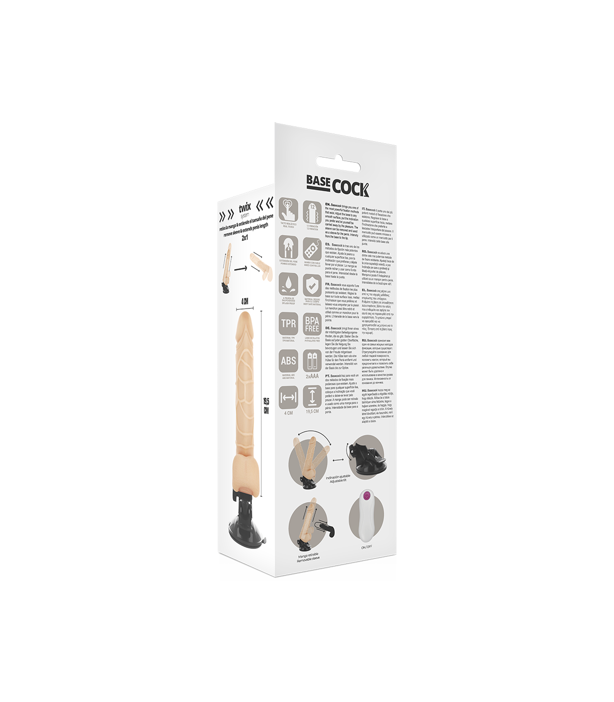 BASECOCK - VIBRADOR REALÍSTICO CONTROL REMOTO NATURAL CON TESTÍCULOS 19.5 CM -O- 4 CM