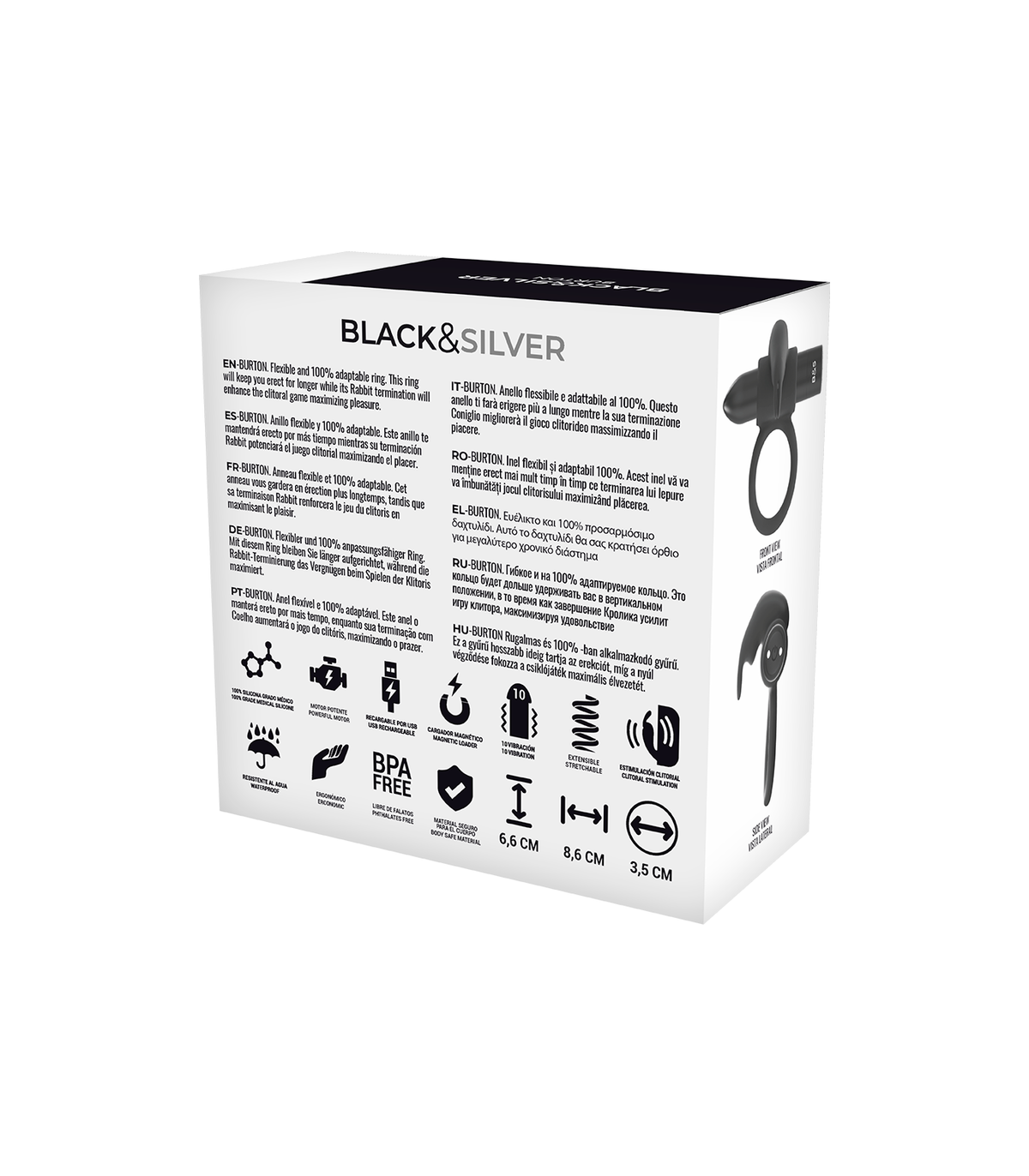 ¡Aquí viene un regalo especialmente azucarado para tu mejor amigo! Esta maravilloso estimulador masculino se disfraza de anillo de pene y quiere endulzar las horas de tu corazón. Con el Black&Silver Ring puedes mejorar adecuadamente tu lanza de placer y darte a ti y a tu amada/o estímulos de hormigueo. Con su superficie negro intenso, suave como la seda, hecha de silicona médica, el Black&Silver lo pone en un éxtasis sensual tan pronto como se lo pone. El anillo se estira agradablemente y, por lo tanto, se adapta a todos los tamaños, solo para acomodarse y dar placer a su pene.