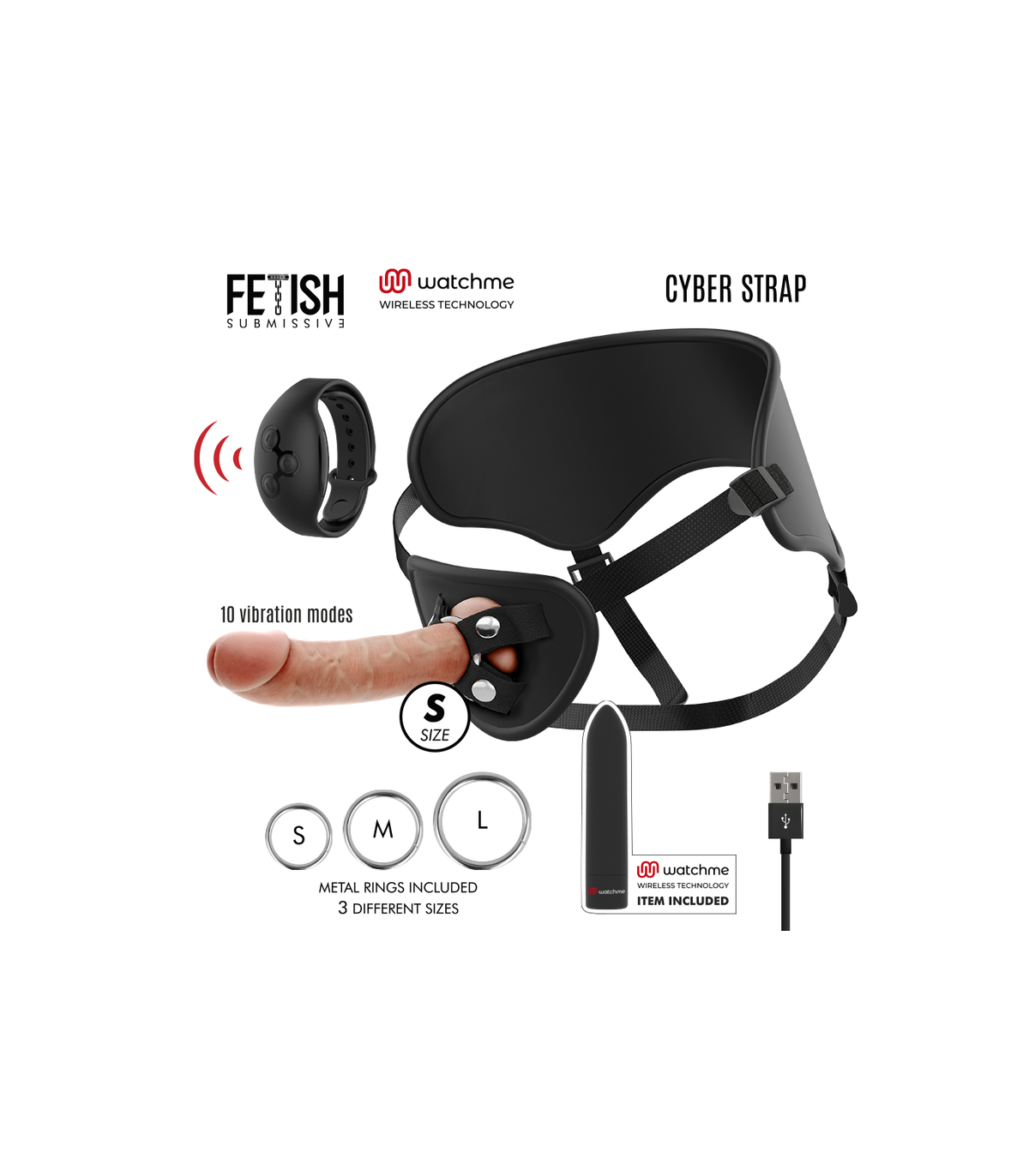 ppCuando quieres que tu primer arnes se vea y se sienta como si fuera real el arnes con correa completamente ajustable de Fetish Submissive en la gama strongCyberstrap stronges justo lo que has estado buscando ppCada vena cada eje y cada cabezal estan cuidadosamente hechos a mano con exquisitos detalles para brindarte la experiencia mas realista jamas imaginada ppCyberstrap incluye un dildo de silicona placentero y realista disenado para alcanzar todos tus puntos intimos ppEste pene realistico premium es de un color de tono natural y tiene una silueta con una base de ventosa ofreciendole una experiencia realista y emocionante ppEl diseno presenta detalles cuidadosamente disenados para mejorar su atractivo natural mientras que su material de doble densidad ofrece el doble de diversion intima ppSu exterior suave al tacto y su nucleo solido forman una combinacion irresistible que te dejara boquiabierto con su sensacion sensacional ppGrandiosas son tambien sus cualidades Con su tacto sedoso y su placentera superficie de 100 silicona Estimula en todas las situaciones en la cama en la banera o utilizandolo con un arnes Ademas se puede usar sin manos colocando su pie de forma ergonomica sobre una superficie llana Se quedara asi tanto tiempo se requiera y se retirara con total facilidad ppFabricado en silicona liquida y empaquetado de una manera cuidadosamente revisada el liquid silicone que incluye CYBERSTRAP es imprescindible para todos los amantes de la diversion realista ppEl material Liquid Silicone 100 Silicona hipoalergenico de CYBERTRASP destaca por su sedosa superficie mate con una extraordinaria adaptacion al cuerpo Acabado premium impermeable IPX7 pulliLas hebillas del cinturon aseguran que no se suelten durante la diversion mientras que las correas tienen un agarre optimo que sostiene todo en su lugarpCompletamente confortable y realista pero ademas incluye vibracion control remoto con la tecnologia WATCHME ppTodos los Juguetes CYBERSTRAP incluyen la tecnologia reloj WATCHME con el reloj incluido y listos para usar con el control remoto o sin el Pero es que es esta tecnologia ppEs un reloj inteligente sexual que te ayudara a controlar los juguetes sexuales pero ademas podemos sincronizarlos con los juguetes sexuales que utilicen la tecnologia watchme para controlar las vibraciones y las funciones de nuestro sextoy favorito ppustrongFunciones de un reloj WATCHME ppEn un reloj WATCHME existen algunas funciones destacadas que pasamos a detallar pulliActivar Desactivar la vibracion liliModificar los modos de vibracion liliModificar las intensidades en cada modo de vibracionpstrongEste modelo cyberstrap es mas avanzado incluye un vibrador control remoto que se acciona simultaneamente con el dildo proporcionando vibracion a ambas personas El vibrador se introduce dentro del propio arnes justo en la zona sensitiva vaginal pCada Cyberstrap no contiene ftalatos no contiene latex es seguro para el cuerpo e hipoalergenico y las anillas de metal estan libres de Niquel ppustrongCaracteristicas pulliLongitud total 175 cm liliLongitud insertable 155 cm liliDiametro del producto 4 cm liliResistente al agua liliMateriales Cuero sintetico Vinilo Metal Velcro Silicona liquida liliControl remoto con tecnologia WATCHME Reloj liliMuy confortablepCada Cyberstrap se limpian con facilidad y se conservan higienicos durante mucho tiempo El flexible material se desliza de maravilla y adopta rapidamente la temperatura del cuerpo El dildo de Cyberstrap se limpia rapida y facilmente con un poco de jabon y agua templada Para una higiene minuciosa rocialo despues con limpiador desinfectante para juguetes sexuales preferentemente con waterfeel toycleaner especificamente concebido para ello