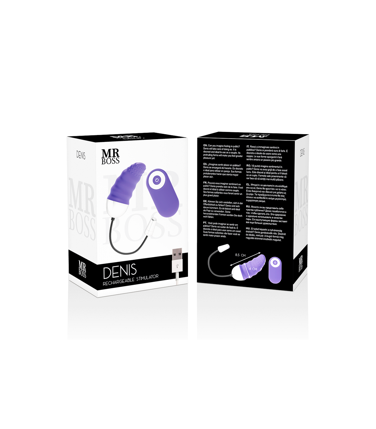 ppDENIS Toma el control Sistema de vibracion innovador dotado de un elegante diseno inspirado en las elegantes fiestas de noche DENIS es un asombroso huevo con mando a distancia con el que puede elegir entre 10 excitantes velocidades de vibracion y posiciones desde del zumbido jugueton hasta modos orgasmicos ppSu cuerpo con relieves y su superficie suave son ideales tanto para la estimulacion vaginal como para frotar su clitoris especialmente en modo fuertes vibracionesbr Forma curvada para una completa estimulacion del punto G pulliPotente Motor liliControl Remoto hasta 15 metros liliSilicona antialergenica liliRecargable usb incluido lili10 Programas de vibracion liliResistente al agua liliBateria de iones de litio liliDe facil uso y facil limpiezapSe recomienda el uso de lubricantes waterfeel para una perfecta experiencia ppDisenos modernos ergonomicos y creativos MRBOSS una marca con todos los estandares de calidad de los juguetes eroticos de gama media altabr Presentacion elegante para un producto unico ppLas formas y curvas de cada vibrador Mr Boss son formidables y disenados perfectamente al cuerpo para proporcionar goce y placerbr En esta fabulosa coleccion encontraras vibradores para el punto G rabbits anillo para el pene y huevo control remoto Todo lo suficiente para proporcionar momentos de placer y lujuria ppExclusividad y materiales de maxima calidad junto a los potentes y silenciosos motores hacen que estos juguetes sean verdaderamente singulares Hasta 10 patrones de vibracion para completar la sensacion de bienestar br MR BOSS es una marca de Lujo Premium adaptado a todos los bolsillos Desde principiantes a expertos MR BOSS siempre estara a la altura para satisfacer con buena nota la demanda de nuestros clientes ppINFORMACION DEL PRODUCTO pulliLongitud total 85 cm liliLongitud insertable 85 cm liliDiametros 37 cm liliPeso 50 gr liliMaterial Silicona y ABS liliColor Lila y plateado liliSumergible Si liliBateria Si USB recargable p
