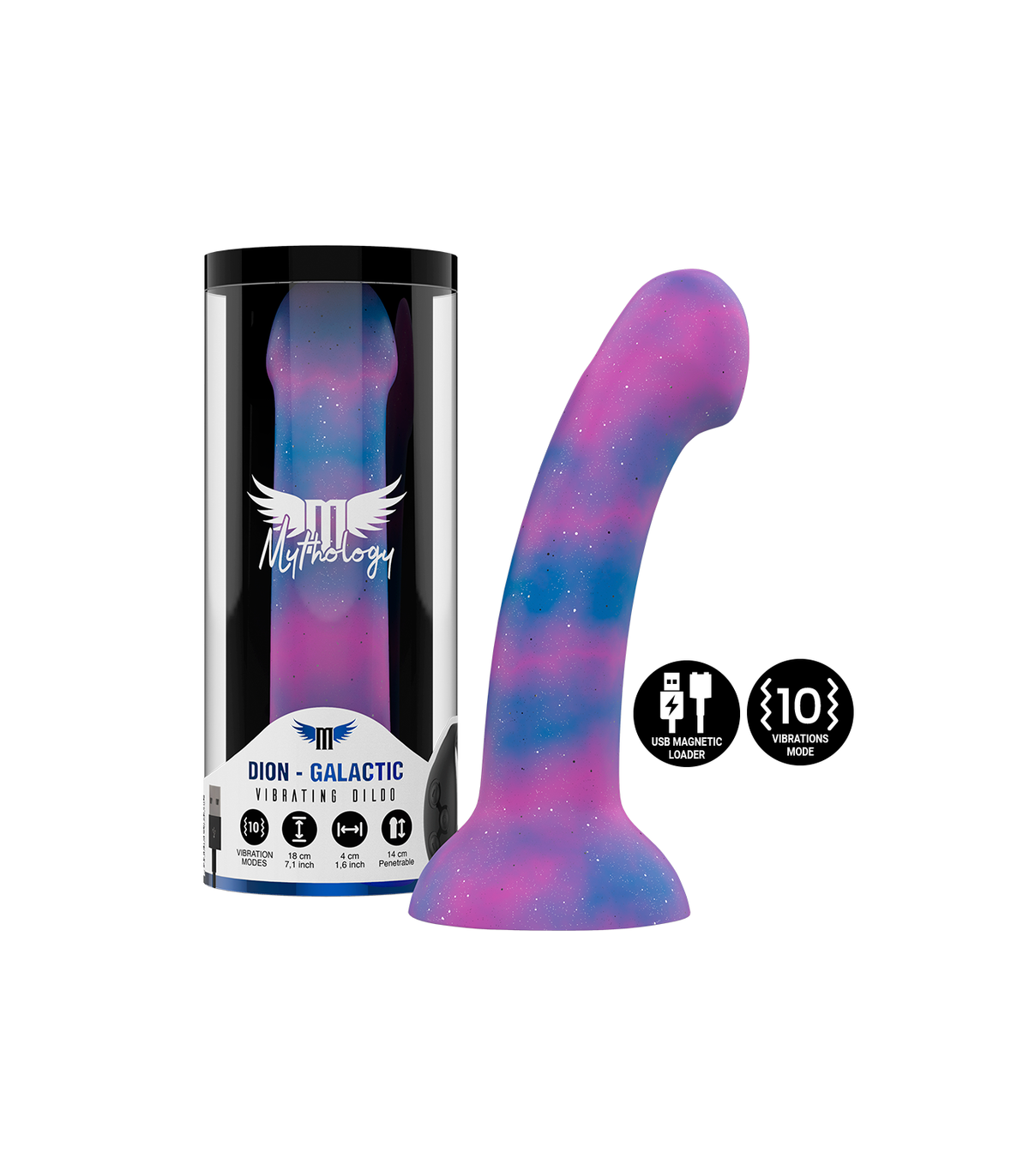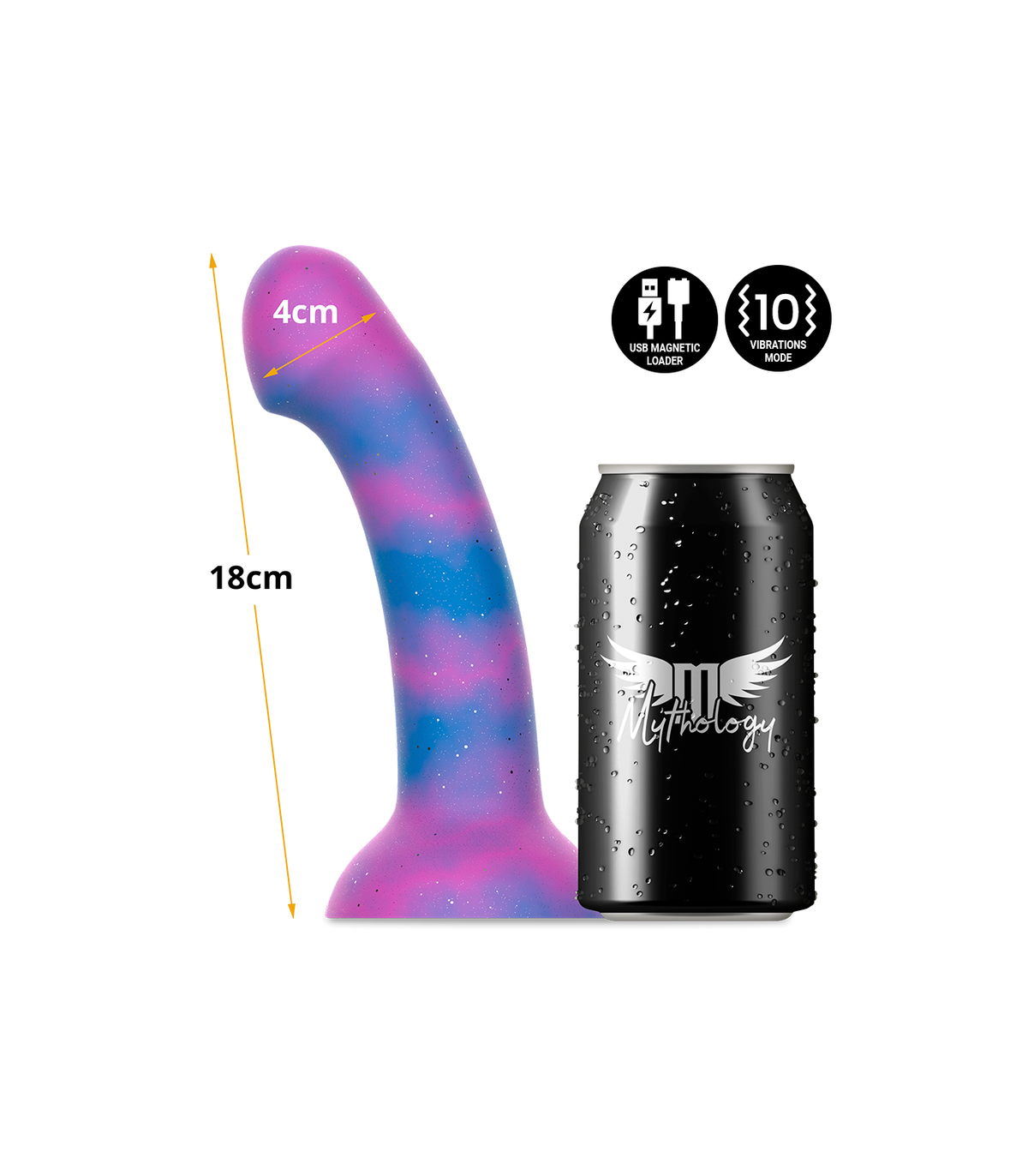 MYTHOLOGY consta de una gama de dildos, todos ellos de silicona de alta gama, disponibles en dos versiones (con vibración y sin vibración) y distintos tamaños (S, M, L). La versión con vibración, recargable, compatible con la tecnología Watchme.
