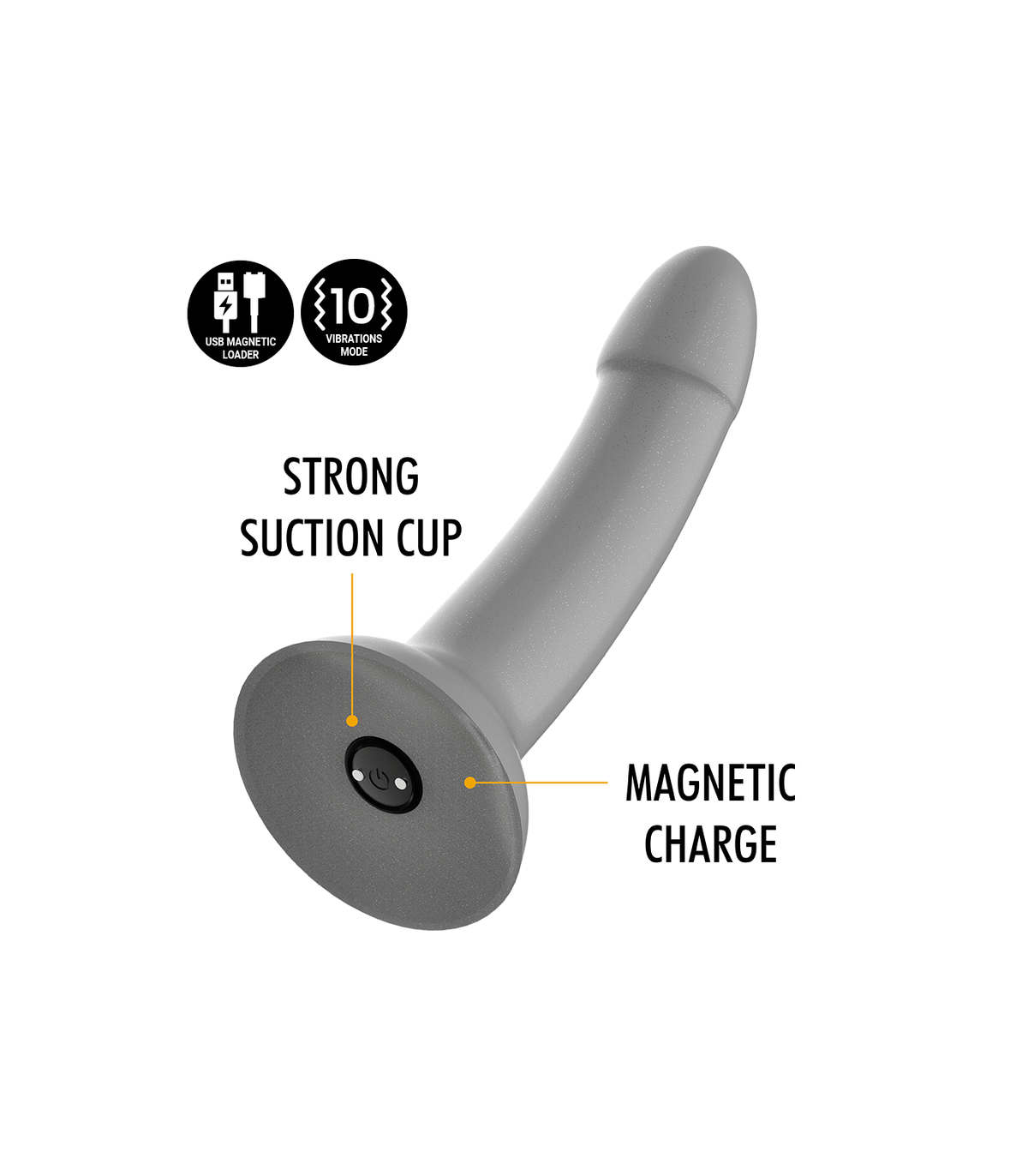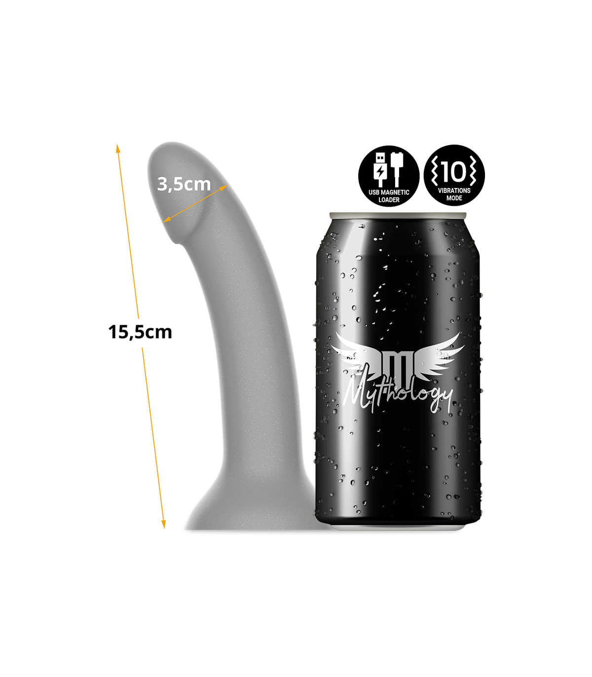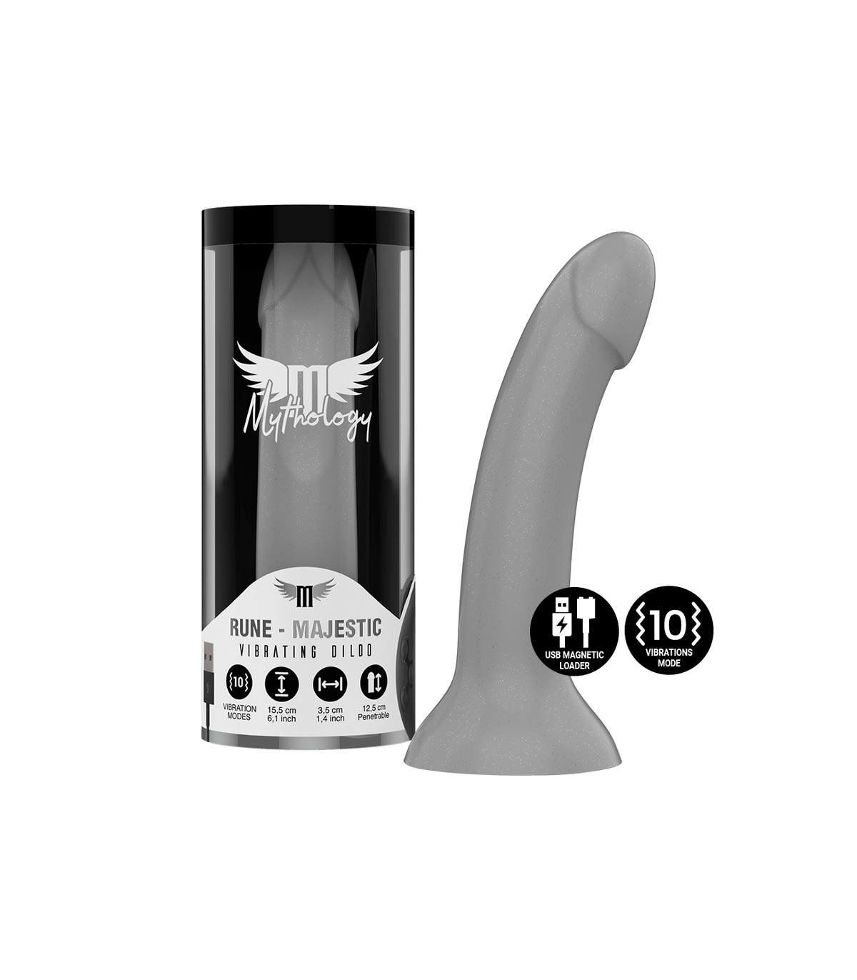 MYTHOLOGY consta de una gama de dildos, todos ellos de silicona de alta gama, disponibles en dos versiones (con vibración y sin vibración) y distintos tamaños (S, M, L). La versión con vibración, recargable, compatible con la tecnología Watchme.