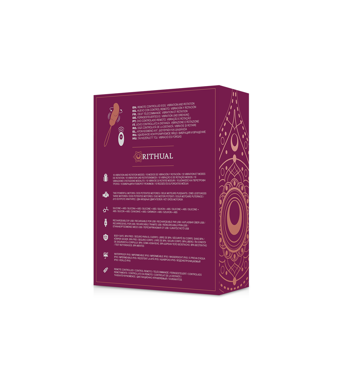 Las balas vibradoras Rithual miman mucho con 10 programas intensivos de vibración. Lo mejor de ella es el práctico mando a distancia, con el que puedes elegir entre los programas con solo pulsar un botón. ¡Para esa vibración especial, también puedes dejar el control a tu amante! Ya sea en la universidad, en celebraciones familiares, en el trabajo o simplemente entre las sábanas, con las balas vibradoras de Rithaul tu vida diaria será mucho más brillante. Gracias a su material impermeable puede usarse bajo el agua con categoría IPX5 .