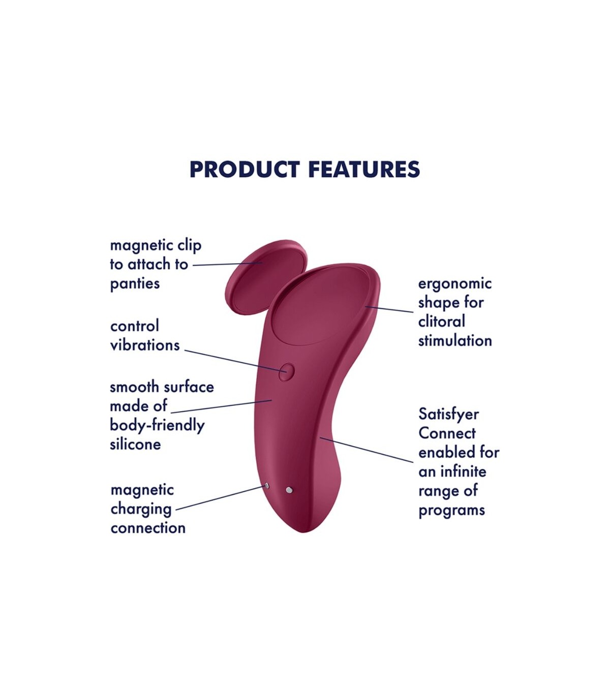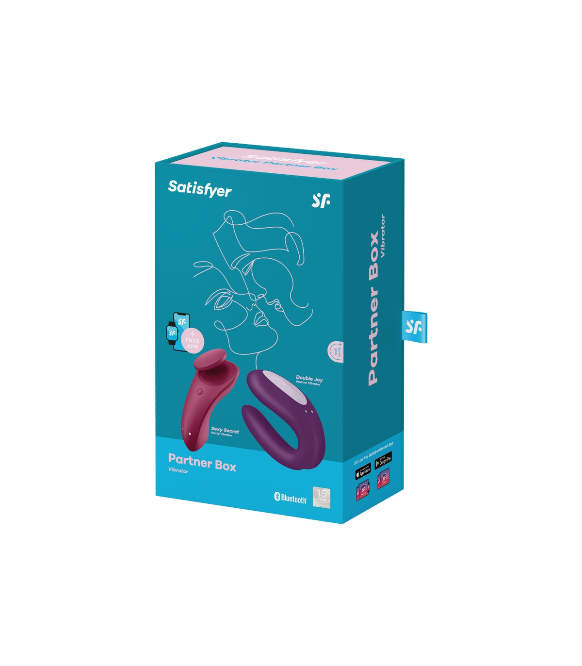 Partner Box 1 incluye dos productos aptos para parejas, Sexy Secret y Double Joy. Sexy Secret es un vibrador de braguitas que se puede llevar encima, y que está equipado con un imán para sujetar el dispositivo cómodamente en su sitio. Double Joy es un dispositivo flexible con forma de U que se puede utilizar durante el sexo con penetración junto a tu pareja. Con tecnología Bluetooth, Sexy Secret y Double Joy se suman al ecosistema de productos que se conectan a la galardonada aplicación gratuita Satisfyer Connect, ofreciéndote la posibilidad de asumir el control del placer y comenzar tu viaje estés donde estés.