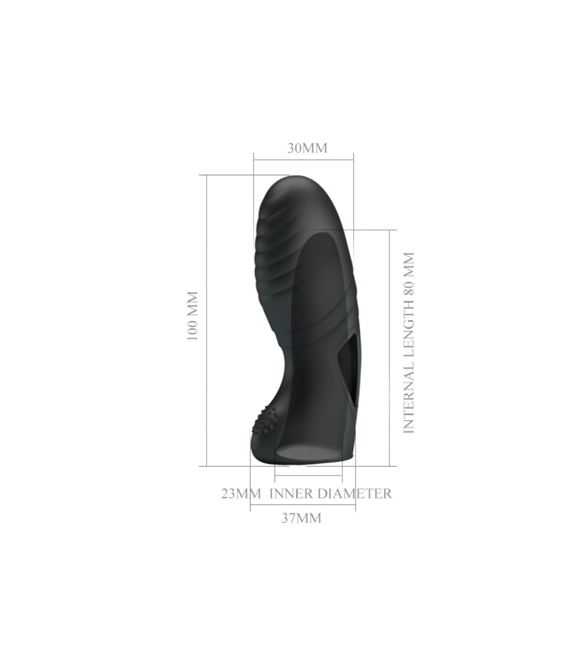 Una vez puesto, la punta de la funda introduce un tipo diferente de sensación. Luego, enciende las vibraciones y dirige expertamente la estimulación exactamente donde lo deseas: el clítoris, los pezones, donde sea que vaya tu mano, ¡así lo hará este vibrador!
