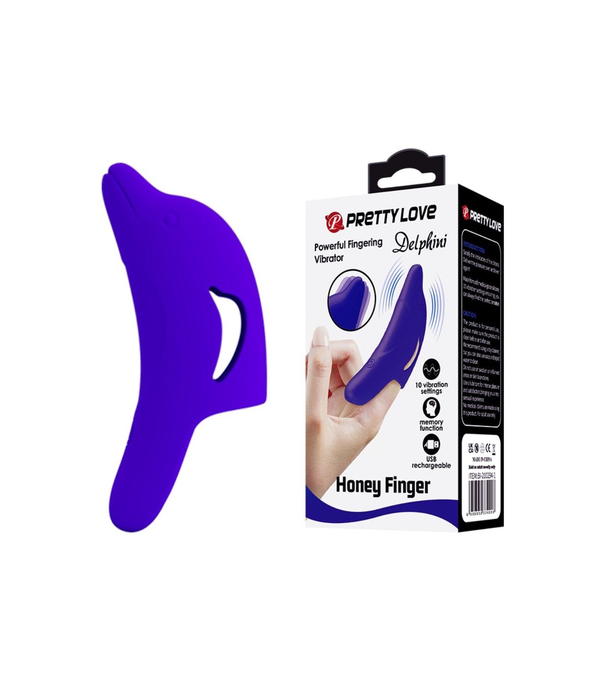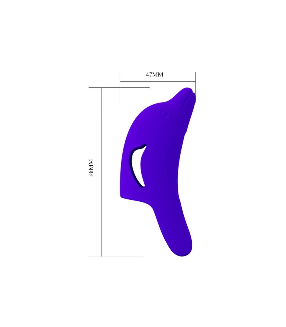 Seguro para el cuerpo y fácil de limpiar, siente tu camino hacia la cima con este vibrador de dedo de 10 funciones de silicona de delfín de Pretty Love.