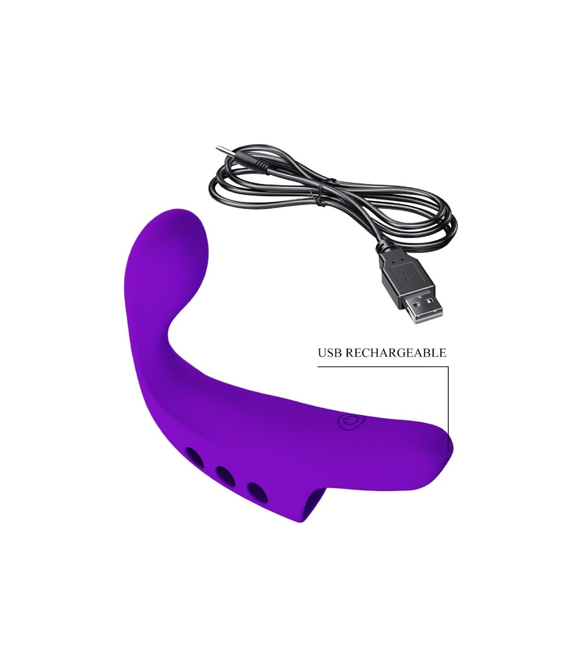 Pequeño, pero poderoso. Increíble para parejas y satisfacción en solitario. El vibrador de dedo recargable Prettylove con 10 configuraciones está hecho de silicona ultrasuave, desliza este vibrador sobre tu dedo; Las correas elásticas brindan un ajuste ceñido para ayudar a que se mantenga en su lugar. Enciende las vibraciones y dirige de manera experta la estimulación exactamente donde quieras.