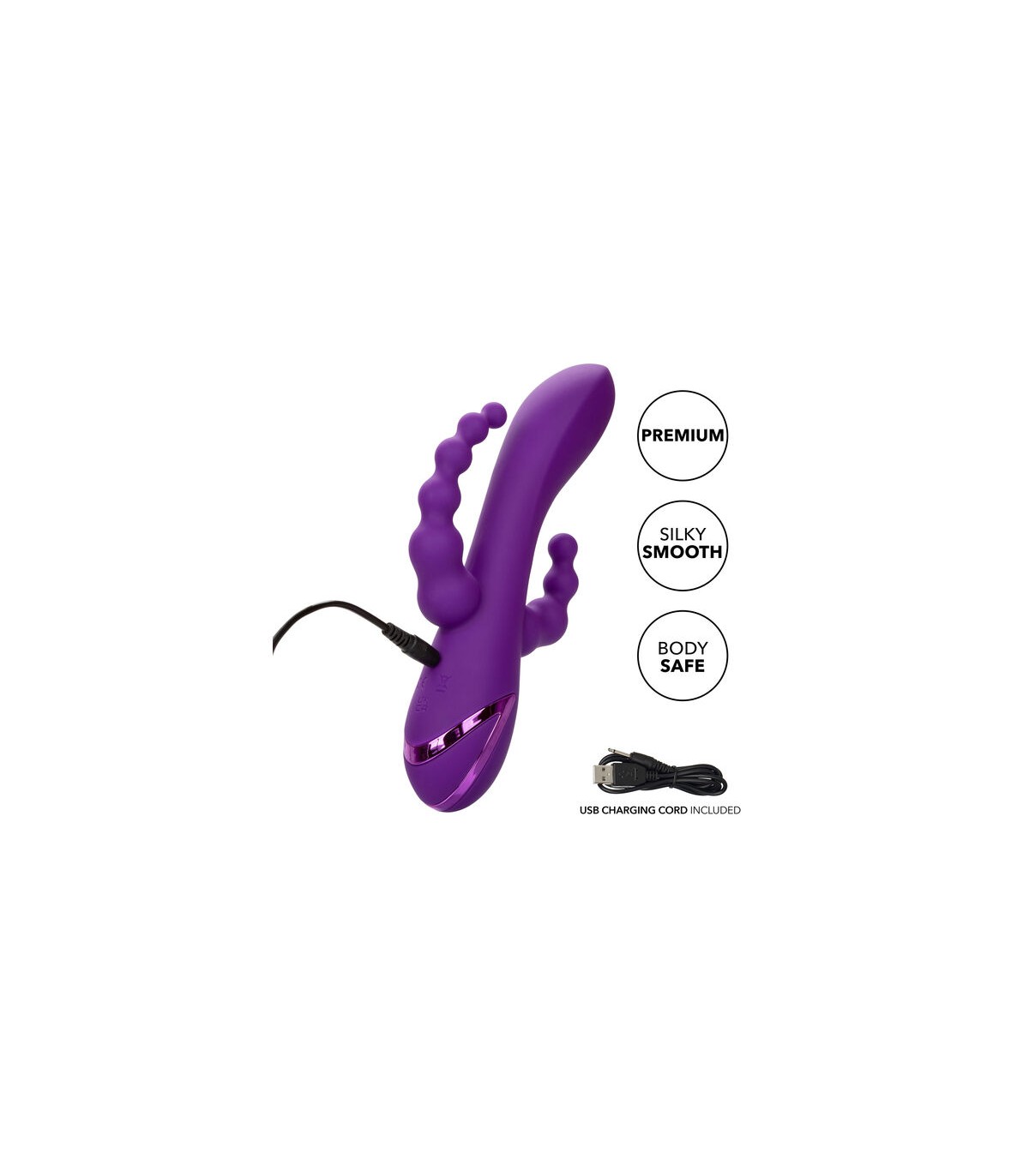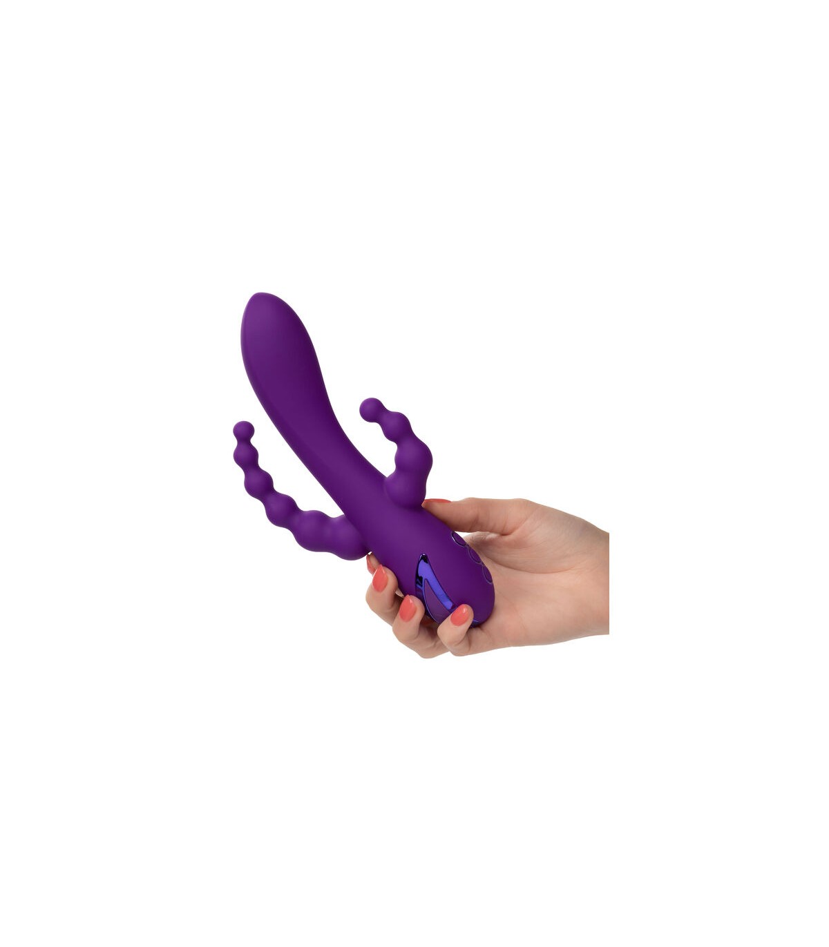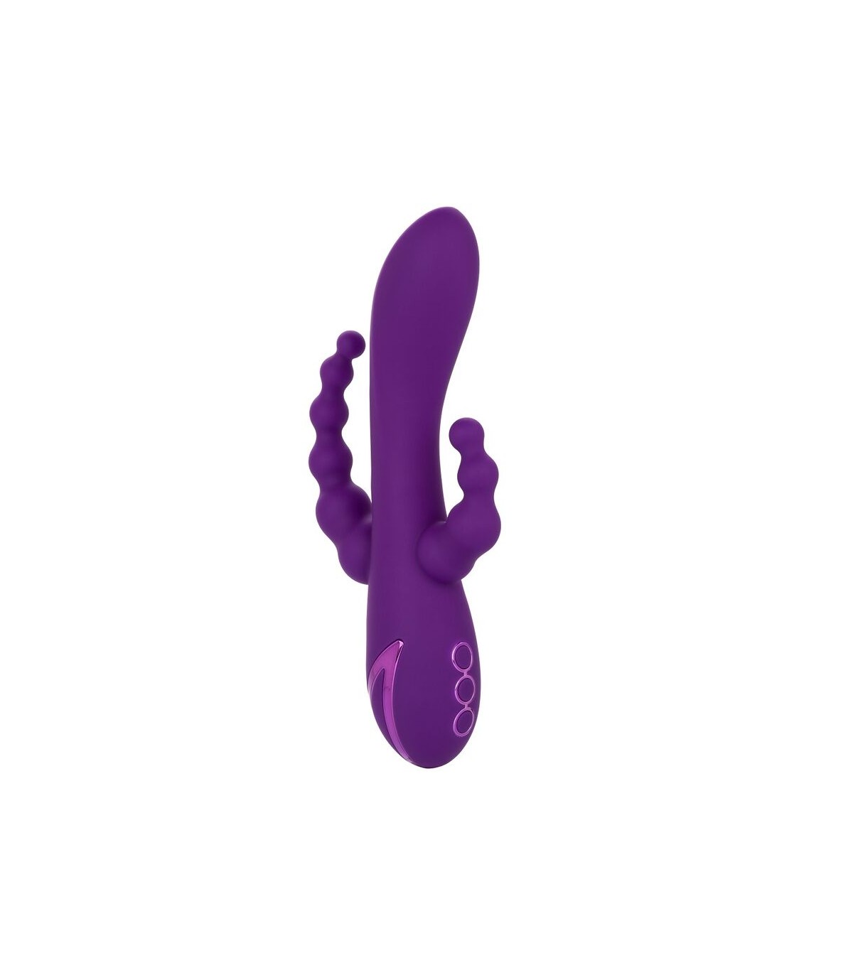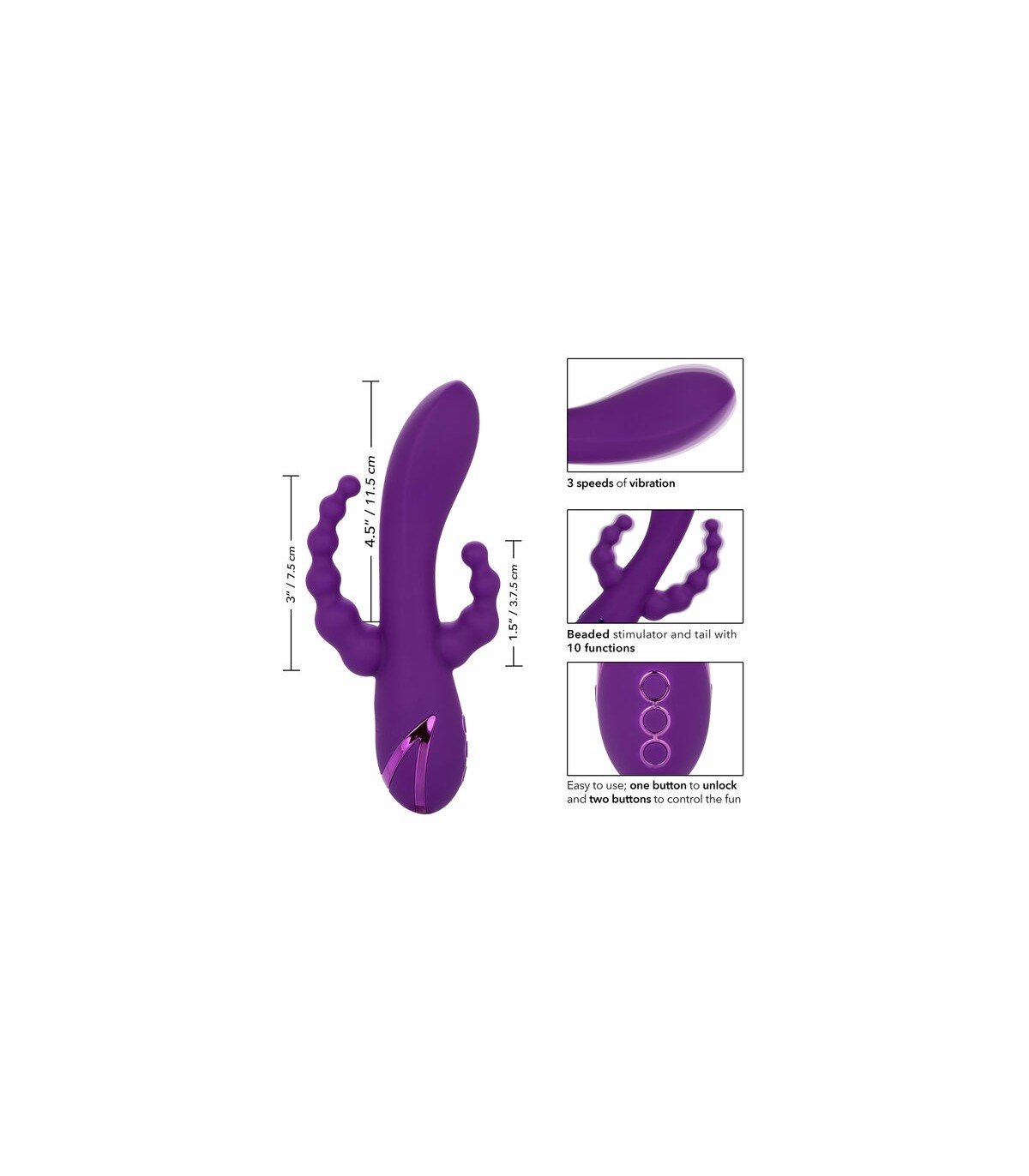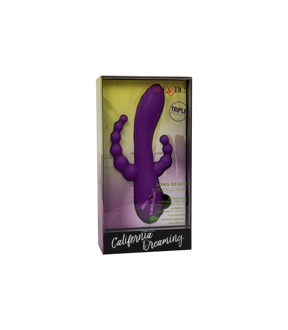 Entrégate a tus fantasías más salvajes con el California Dreaming Long Beach Bootylicious. Experimenta el placer como nunca antes con el potente masajeador de triple acción con eje, cola y estimuladores. El potente masajeador de doble penetración utiliza 3 velocidades de vibración a través del eje curvado sensualmente para una penetración provocativa en el punto G.