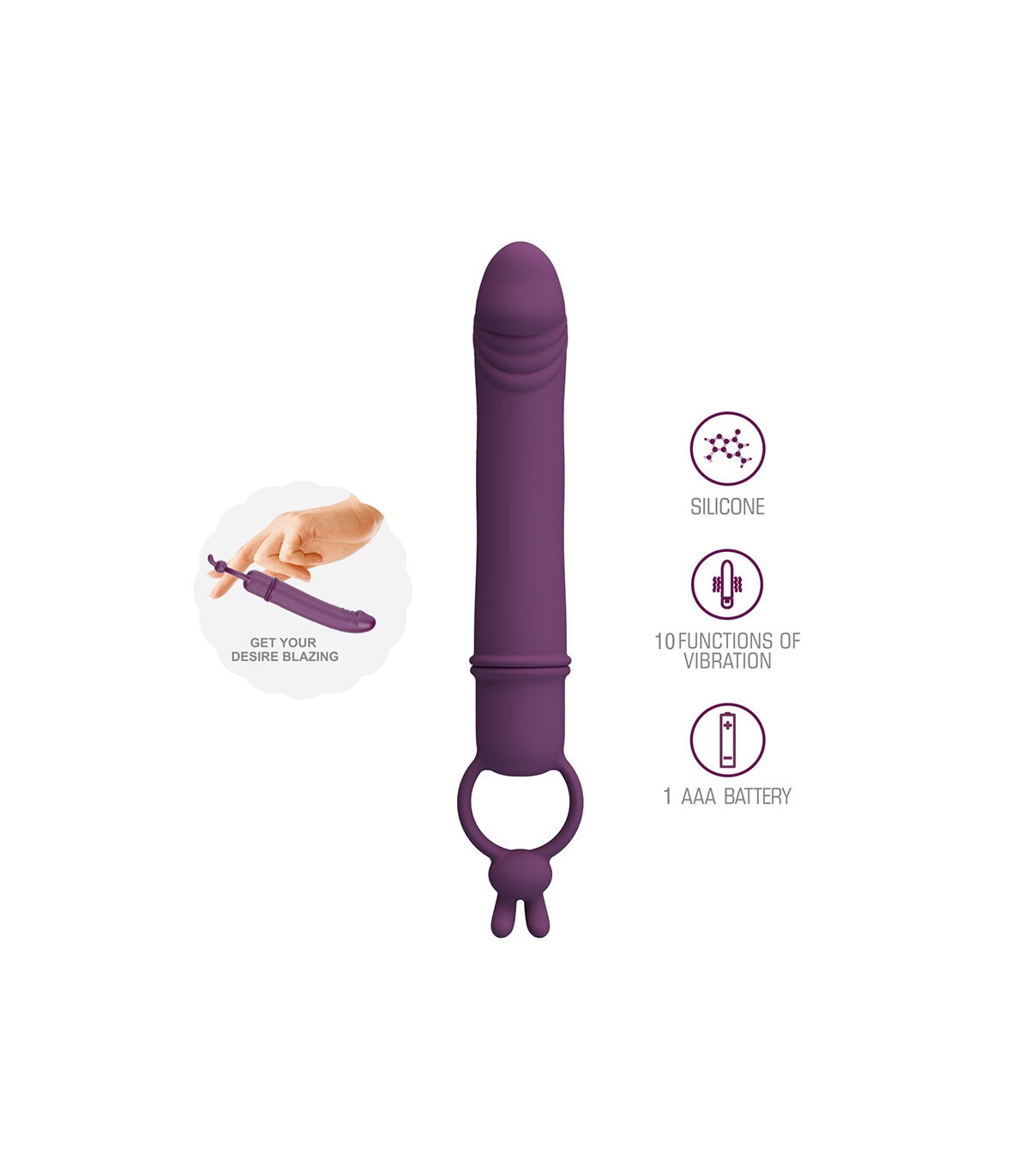 Este dispositivo se adapta cómodamente a tu mano permitiéndote sentir aún más profundamente sus potentes vibraciones, masajeando tus zonas deseadas gracias a su innovador anillo que garantiza un agarre seguro para juegos en solitario o en pareja.