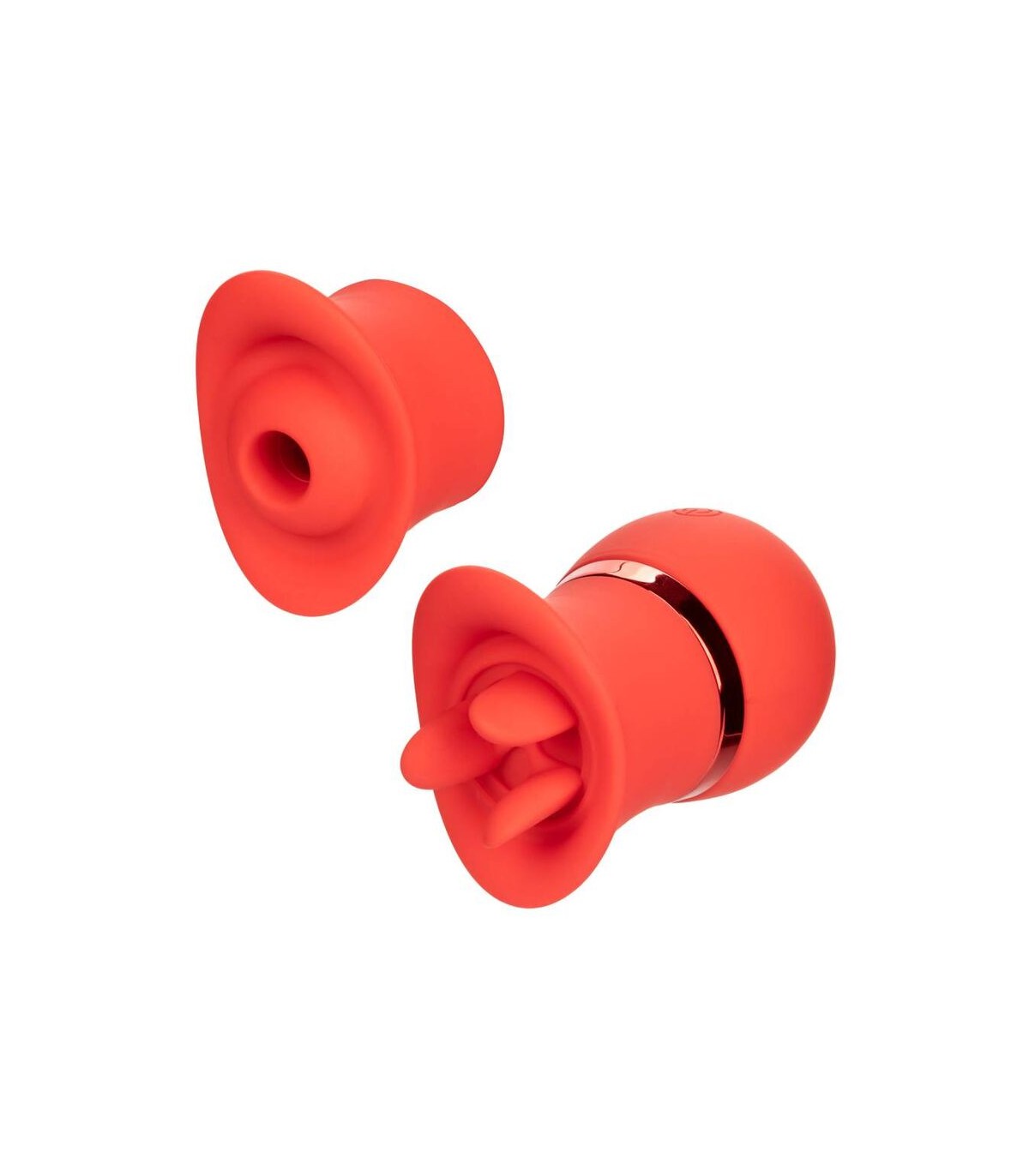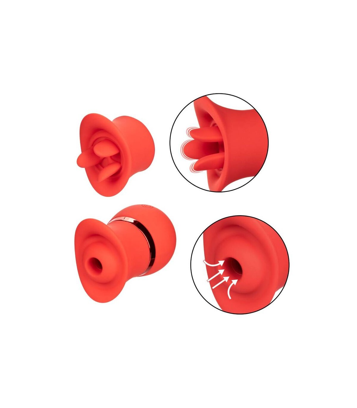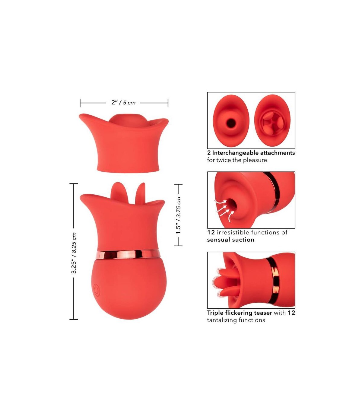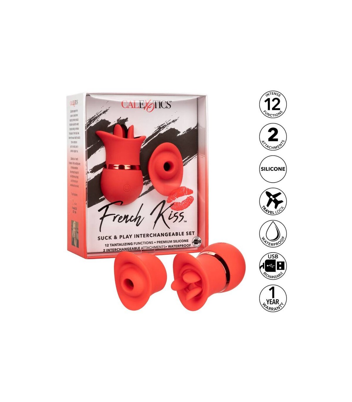 Dos veces el placer, oh la la! El sensual conjunto intercambiable de chupas de besos franceses es justo lo que necesita con 2 accesorios intercambiables con 12 funciones de vibración o 12 funciones de succión. La primicia de contacto completa y el teaser de triple lengua aleteo han sido diseñados para contornear perfectamente a sus puntos de placer más íntimos con 12 funciones intensas. Cambie en el encasador sensualmente contorneado y disfrute de 12 funciones de succión emocionante o disfrute de un verdadero beso francés con 12 funciones de acción parpadeante. La silicona suave y flexible y el cuerpo sensualmente contorneado le permiten entregar un placer identificado desde casi cualquier ángulo. Use el botón de fácil toque para controlar hasta 50 minutos de placer. Recargue su placer en solo 1 hora con el cable USB proporcionado en el puerto de carga de autoselección en el masajeador. El tamaño discreto y el botón de bloqueo de viaje del mini masajeador lo convierten en el compañero de viaje perfecto, lo que le permite abrazar el placer radiante donde las fantasías lo lleven .