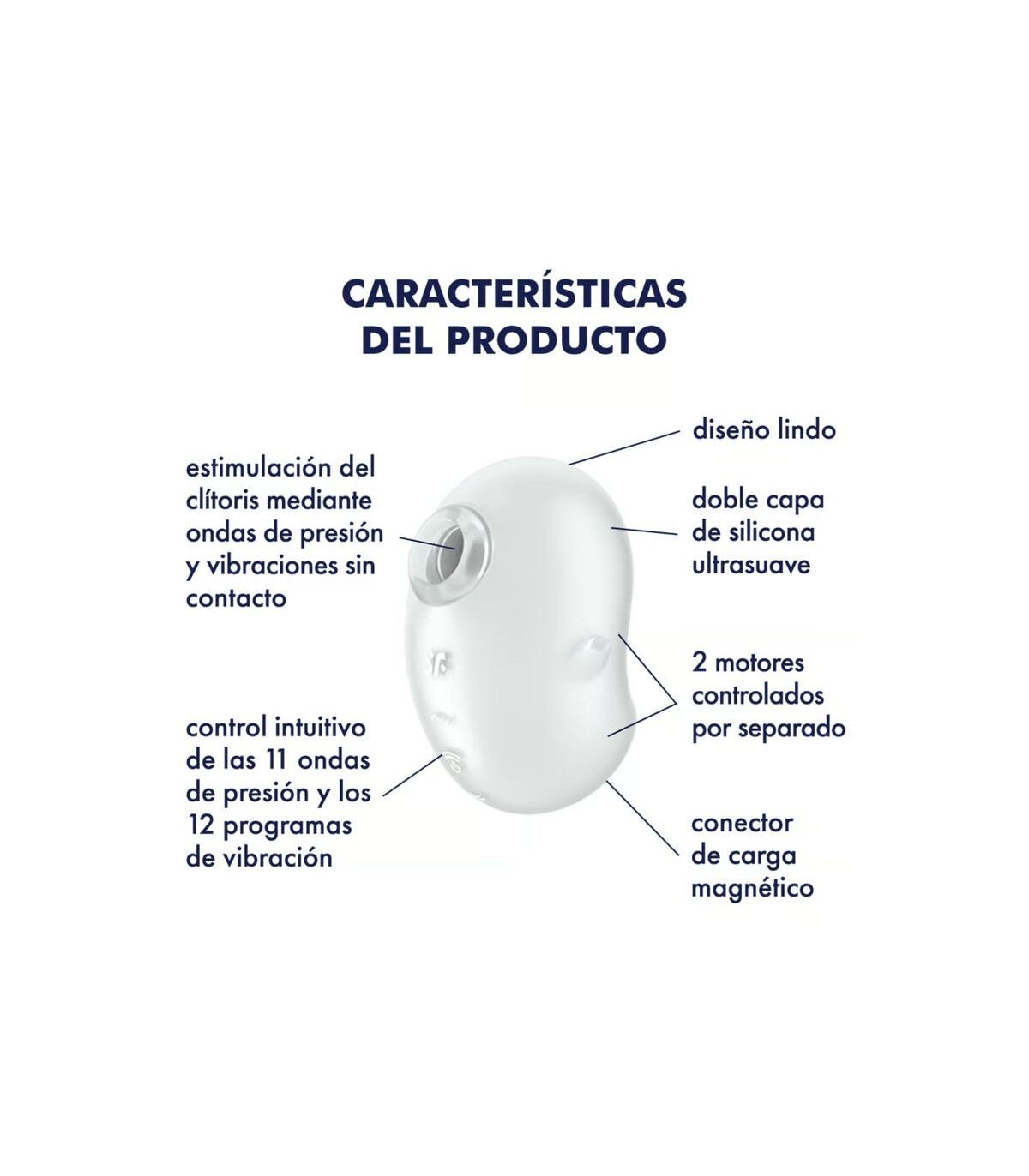 Dos motores en su interior hacen que este vibrador de ondas de presión vibre y te haga temblar de placer. Coloca la apertura del vibrador sobre el clítoris y experimenta ondas de presión sin contacto con la tecnología Satisfyer Air Pulse. O puedes darle placer a tu zona erógena con vibración: combina las 11 intensidades de ondas de presión y los 12 programas de vibración como más te guste.