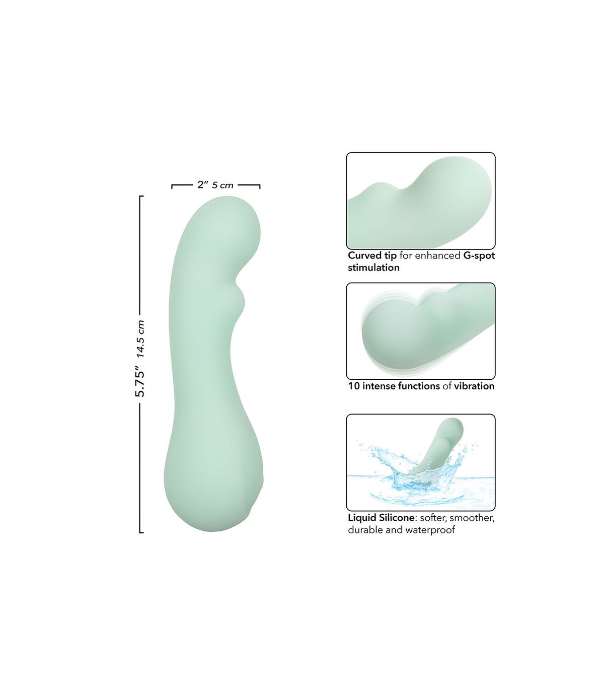 Su punta curvada mejora la estimulación del punto G, mientras que un acento bulboso intensifica el placer.