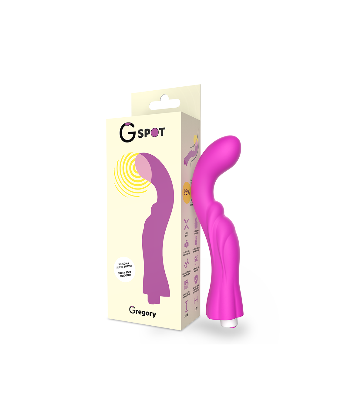 Placentero vibrador Punto G Recargable, Gregory es un masajeador perfectamente diseñado para la estimulacion completa del Punto G-