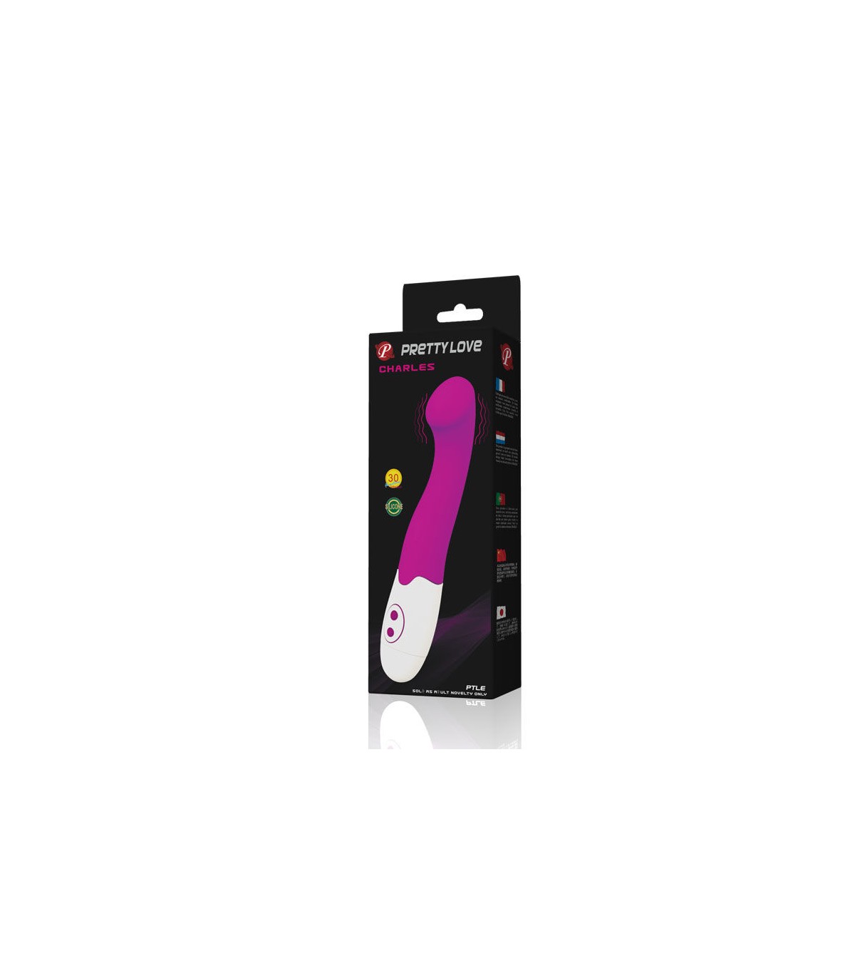 Elegante vibrador Charles en color Lila y Blanco de calidad inigualable que puede ofrecer una estimulación potente.