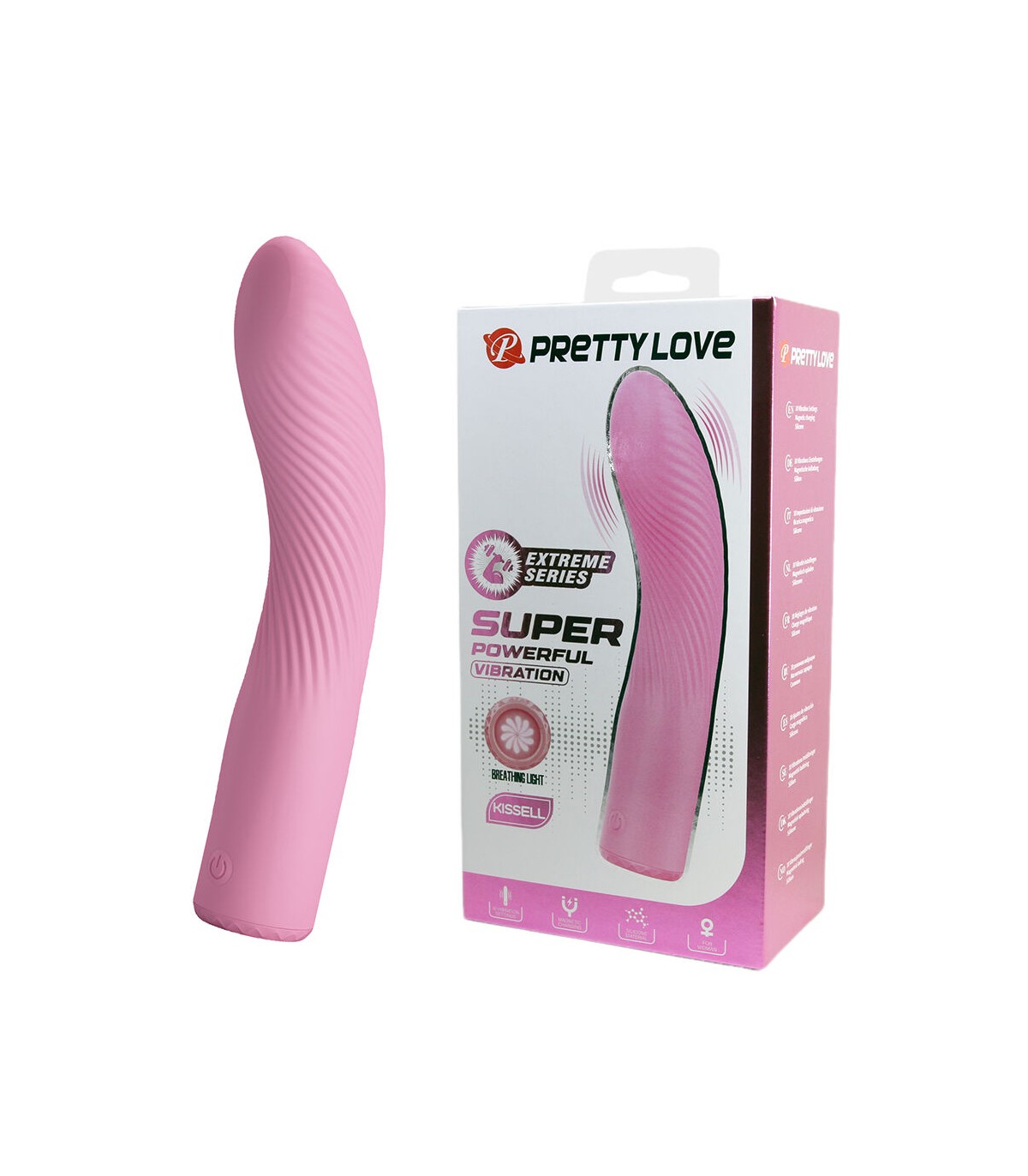 Elegante y sofisticado vibrador Pretty Love de la línea Extreme Series, diseñado en un delicado color rosa que combina potencia y sensualidad para ofrecer una estimulación intensa y altamente placentera.