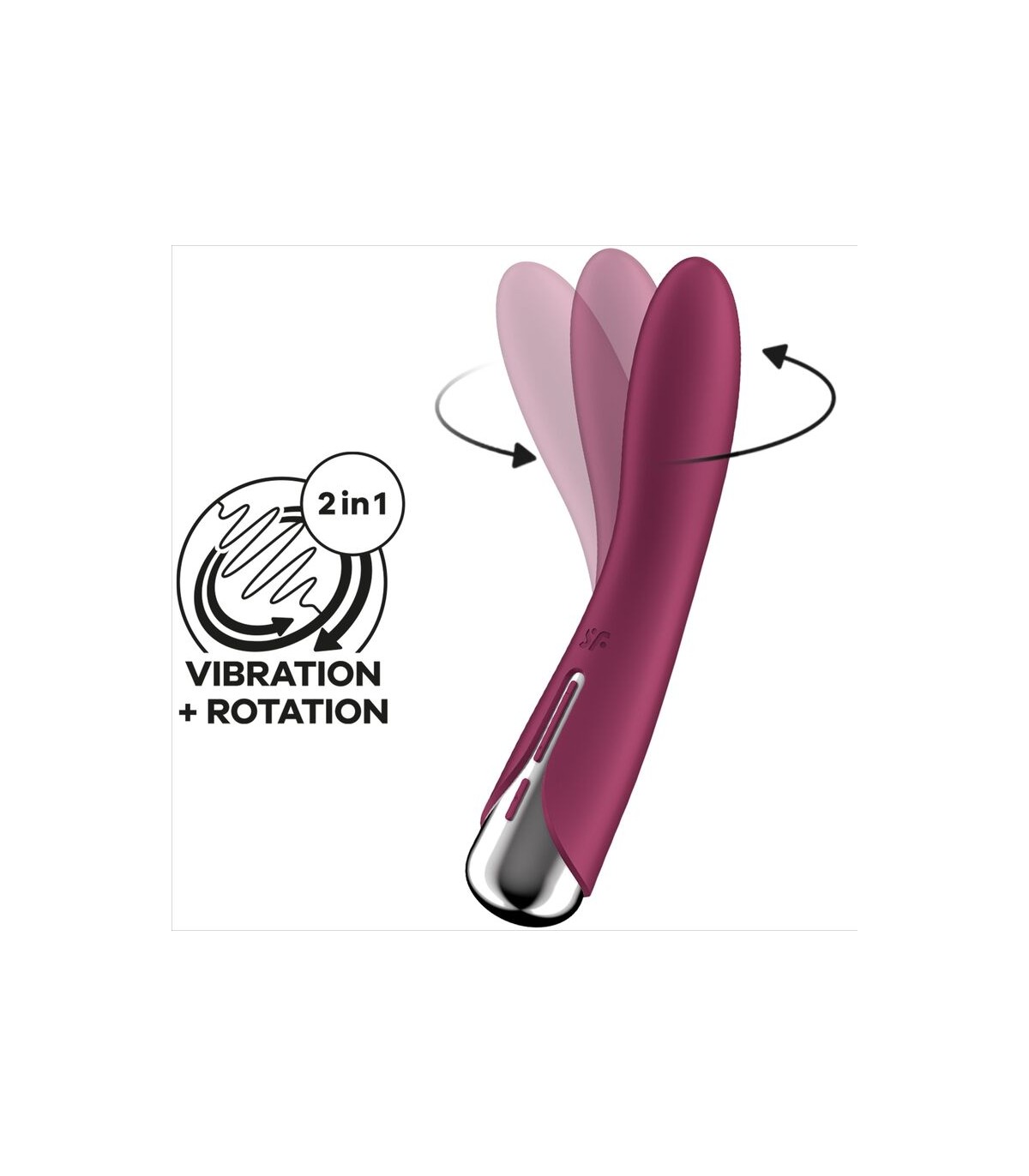 Para aquellos que no se cansan de su punto G o que recién lo están descubriendo: el vibrador giratorio del punto G llamado Spinning Vibe 1 proporciona un tipo de estimulación especialmente excitante. Todos lo sabemos: el punto G no es sólo un punto, es más bien una zona. Este vibrador lo masajea de forma experta con su cabezal giratorio: el Satisfyer Spinning Vibe 1 cuenta con 5 velocidades de rotación (en sentido horario y antihorario) y solo tú decides si te gusta lento o rápido. Este tipo de estimulación se siente muy natural: ¡una experiencia intensamente hermosa! Mejora esta sensación activando la vibración: 12 programas de vibración, desde suave hasta ultrafuerte, llevan tu punto G (o deberíamos decir tu zona G) a niveles vertiginosos. Diviértete encontrando tu configuración favorita: la rotación y la vibración se pueden controlar por separado.