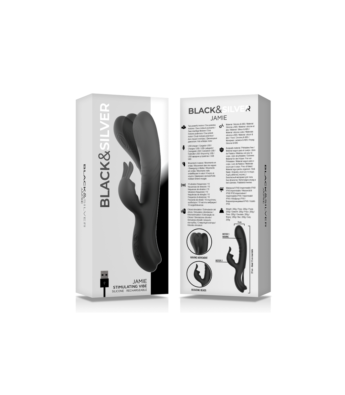 BLACK&SILVER™ Jamie ofrece un placer sin límites a través de la doble estimulación. Dos potentes motores miman tanto el clítoris como el punto G. El estimulador de clítoris se adapta perfectamente con su diseño ergonómico para una estimulación intensificada.