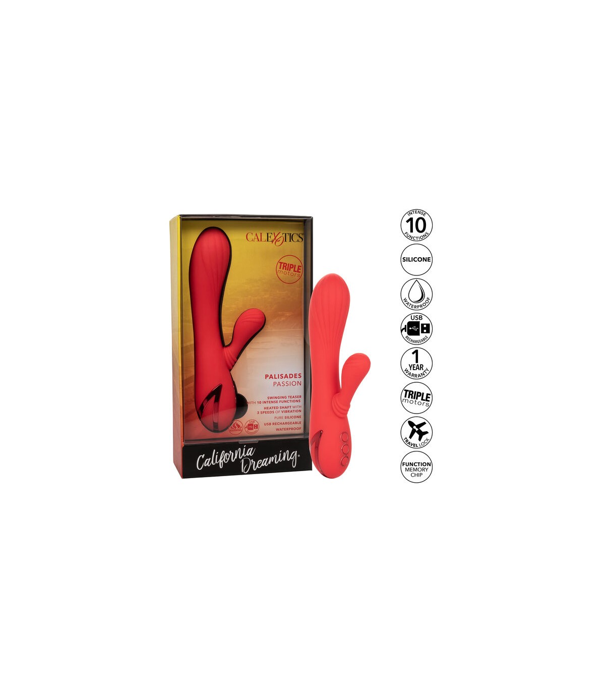 Entrégate a tus fantasías más salvajes y siente cómo sube el calor con el California Dreaming Palisades Passion al rojo vivo. Experimente el placer como nunca antes con el teaser oscilante único y las 3 velocidades de vibración del eje.