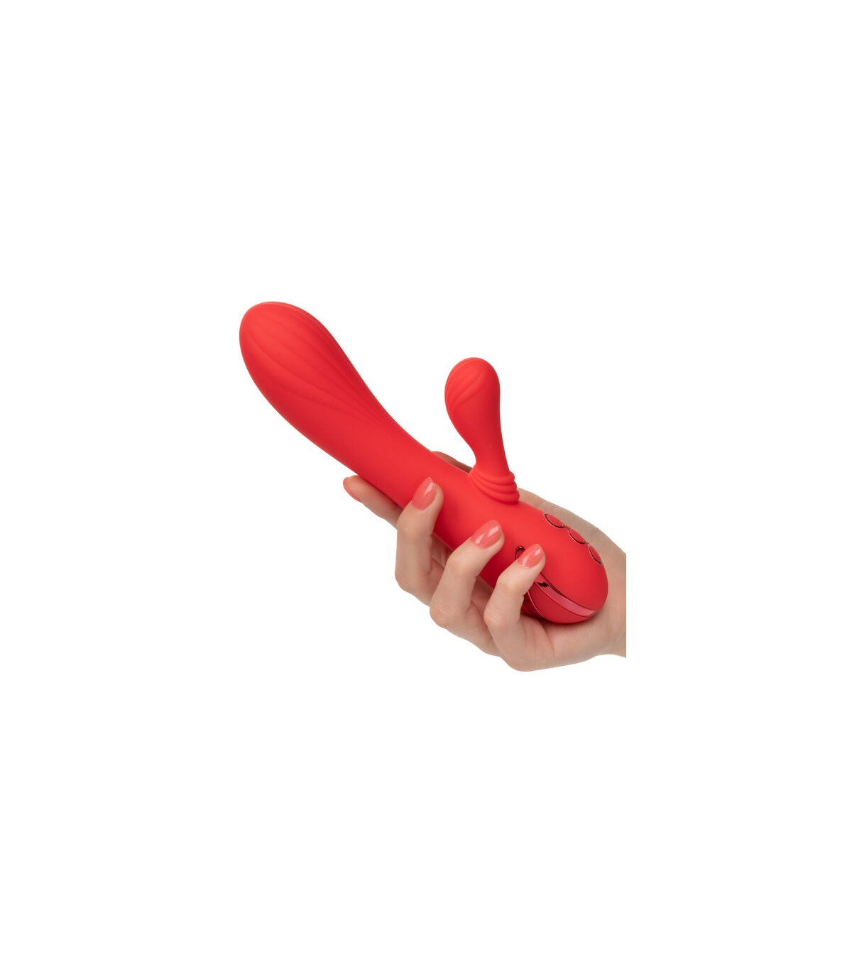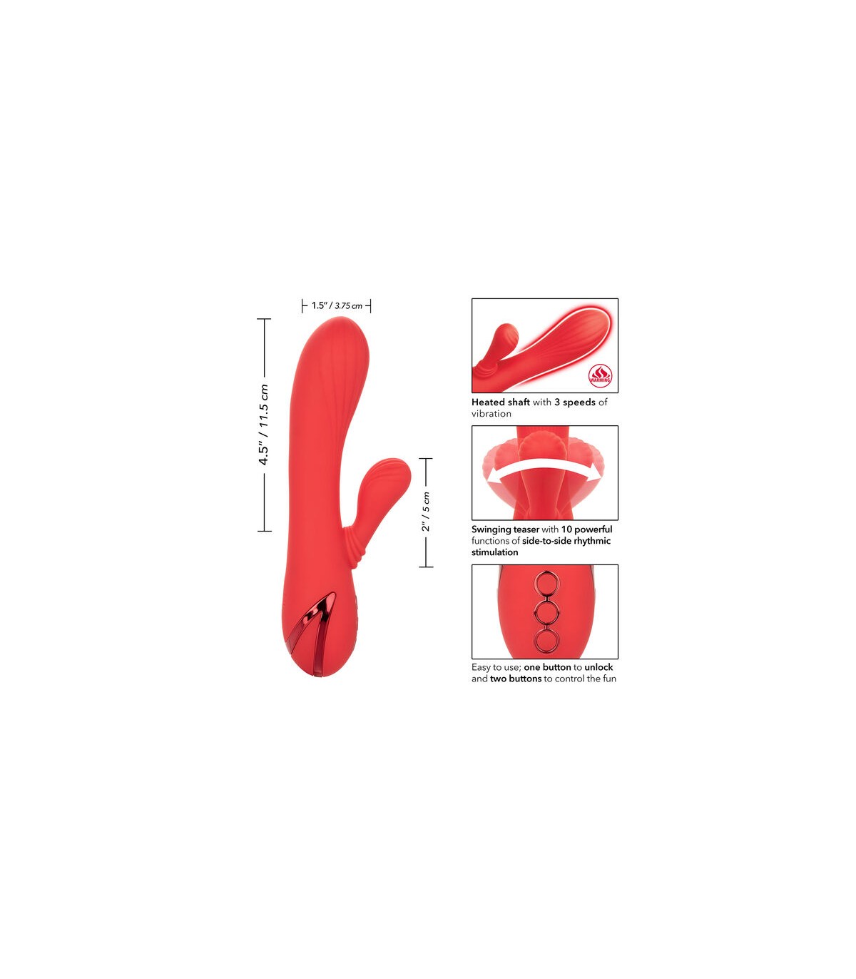 El lujoso vibrador de conejo calentado tiene un estimulador rítmico de lado a lado único en su tipo para una estimulación externa alucinante. Ya sea que esté buscando subir el calor con un amante o simplemente disfrutar de un momento sensual a solas, este deslumbrante masajeador térmico está listo.