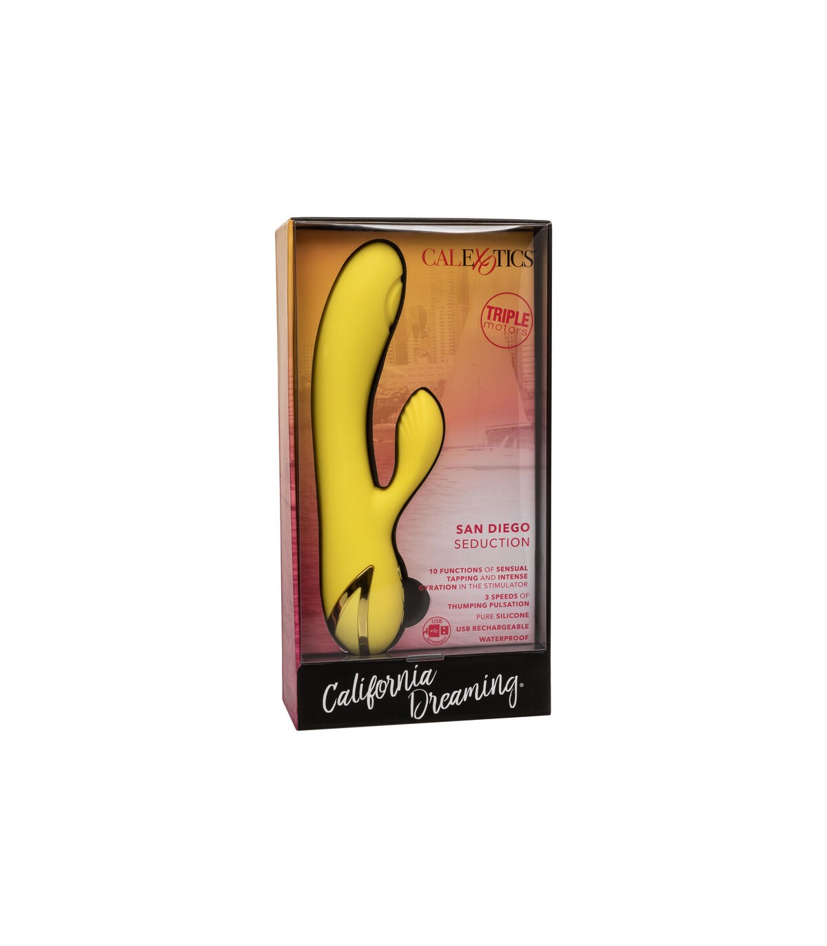Sumérgete en un mar de placer y fantasías bañadas por el sol con el divertido California Dreaming San Diego Seduction. El potente masajeador tiene 10 funciones de golpeteo y giros intensos y 3 velocidades de golpeteo del eje para una experiencia de placer única. El cuerpo de silicona sin costuras y el teaser texturizado brindan una estimulación que hace temblar las rodillas dentro y fuera del agua.