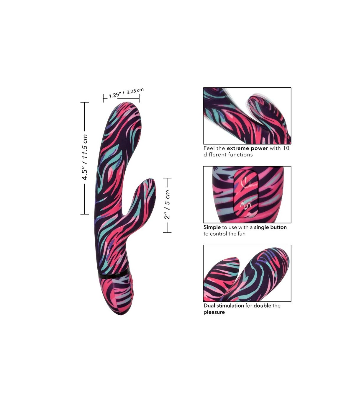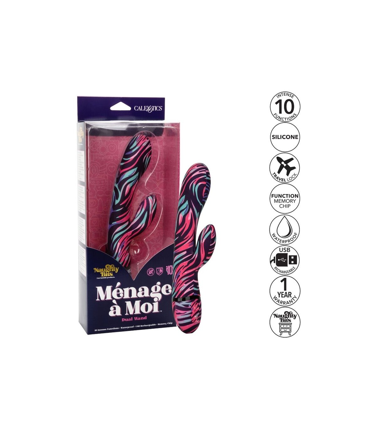 Un vibrador dual en todos los sentidos de la palabra, el ménage à Moi Dual Wand de doble punta, doble estimulador y doble botón tiene el famoso bloqueo de viaje de empuje de 3 segundos CalExotics para garantizar un viaje discreto, pero también contiene 10 funciones alucinantes de vibración, pulsación y escalada, todo envuelto en un robusto eje recargable por USB y un estimulador de puro placer que seguramente le volverá loca, tanto cuando se usa sola o en compañía