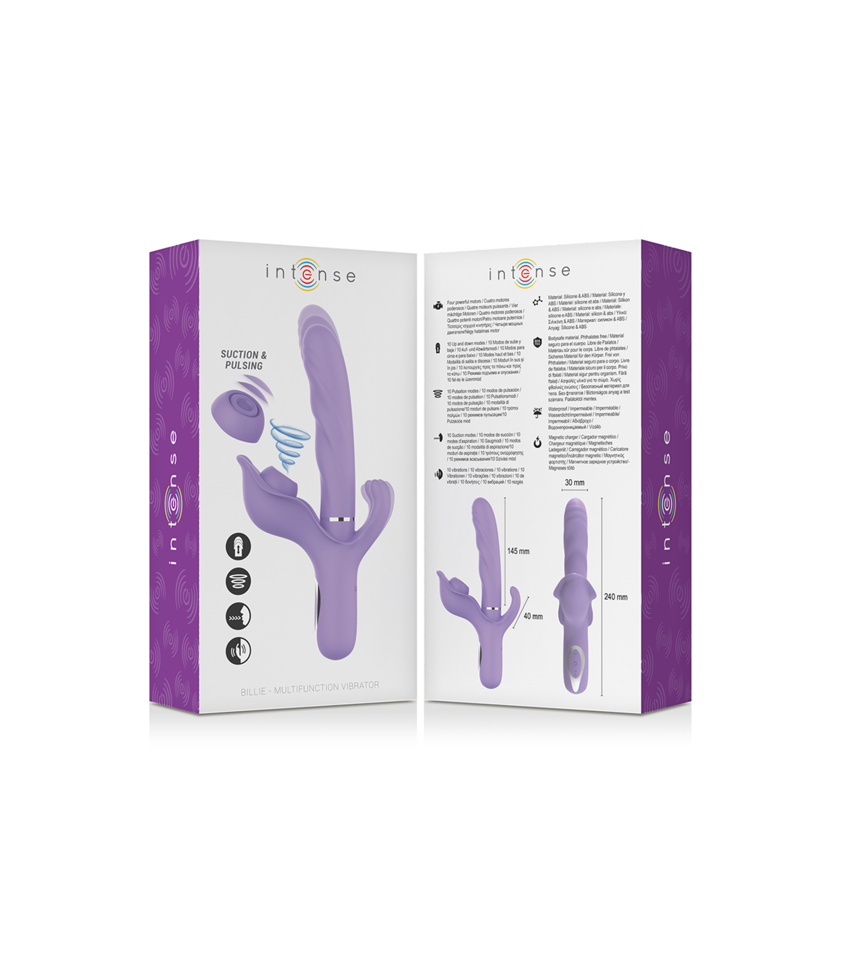 El vibrador multifunción BILLIE de la marca INTENSE es un juguete sexual de alta gama que te proporcionará una experiencia de placer incomparable. Con un diseño elegante en color lila y una amplia gama de características avanzadas, este vibrador está diseñado para satisfacer todas tus necesidades íntimas. Aquí tienes una lista de sus características clave: