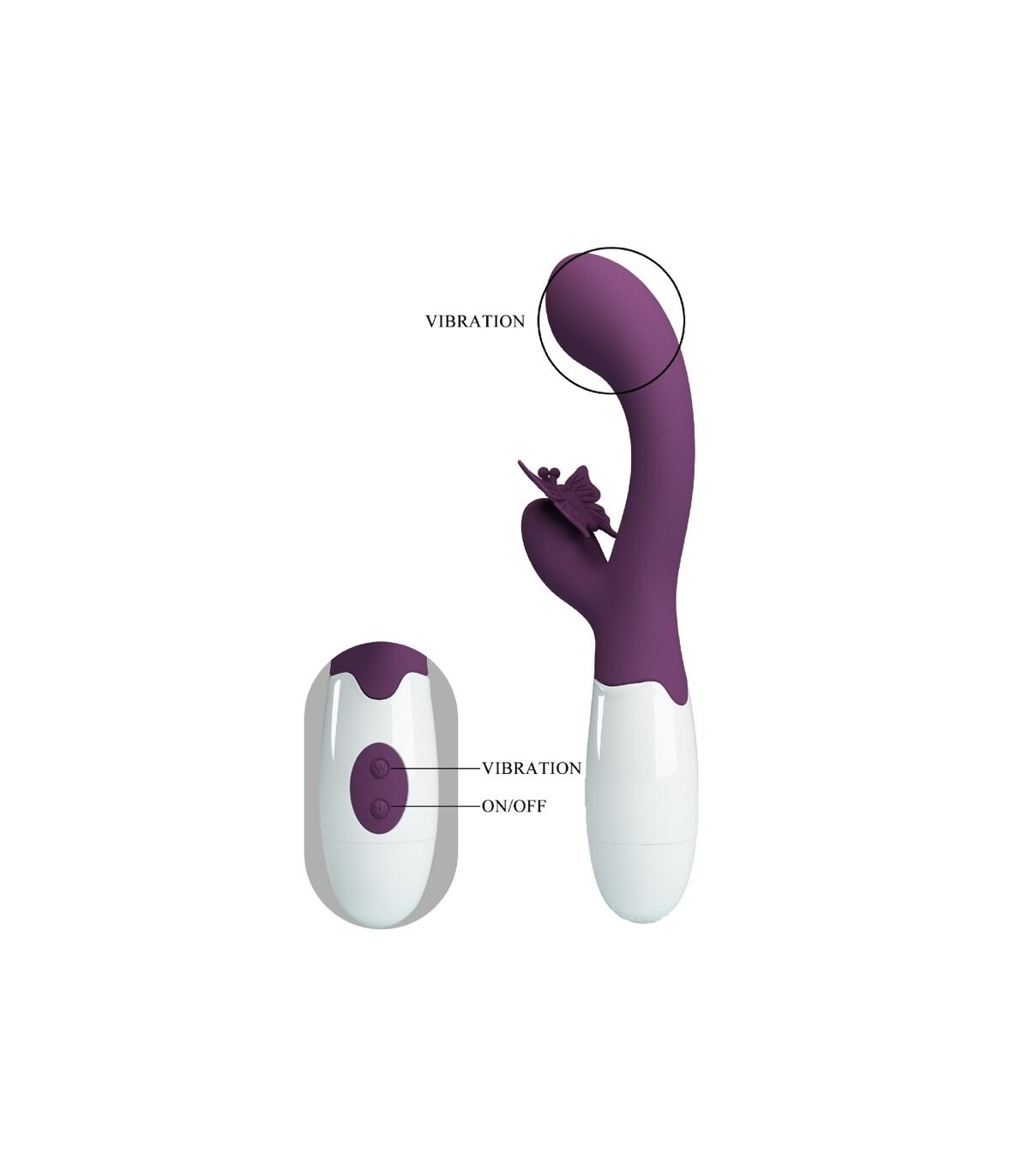 Bella e intensa! El nuevo vibrador Butterfly Kiss de Pretty Love puede brindar una poderosa estimulación de la vagina y el clítoris con su brazo de estimulación del clítoris en forma de mariposa danzante. Simplemente sienta el tierno beso de la mariposa con el ritmo de la vibración. El pronunciado cabezal del vibrador hace que la vulva se sienta maravillosamente llena y proporciona un intenso masaje del punto G. El vibrador tiene dos potentes motores. Tiene 30 modos de vibración emocionantes y solo necesita dos baterías AAA. Para un intenso sexo en solitario que cumpla todas las fantasías.