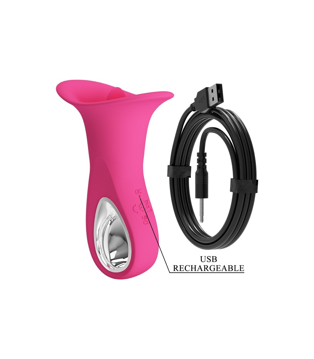 Este vibrador oral de Pretty Love ofrece momentos íntimos de placer oral con una lengua vibradora suave pero potente. La lengua ofrece 12 funciones de vibración excitante y estimulación del gusto.